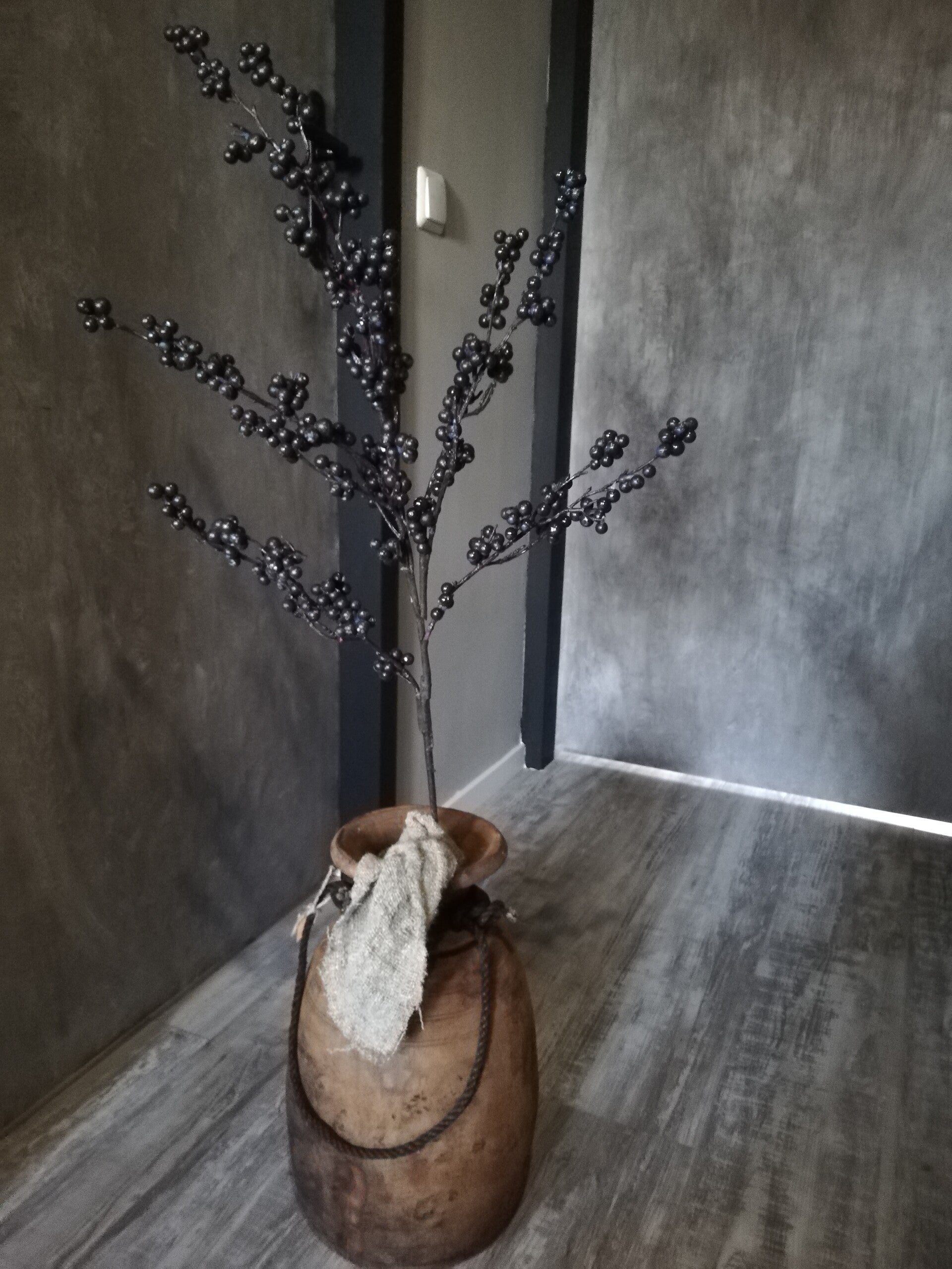 Deze tak met bessjes, die van tempex zijn, is erg decoratief. Op de foto is 1 tak.