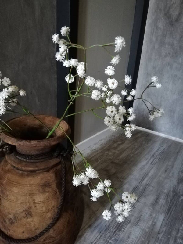 Deze gipskruid is net echt. De bloemetjes zijn van een soort rubber. Foto 1 zijn 2 takken, foto 2 is 1 tak.