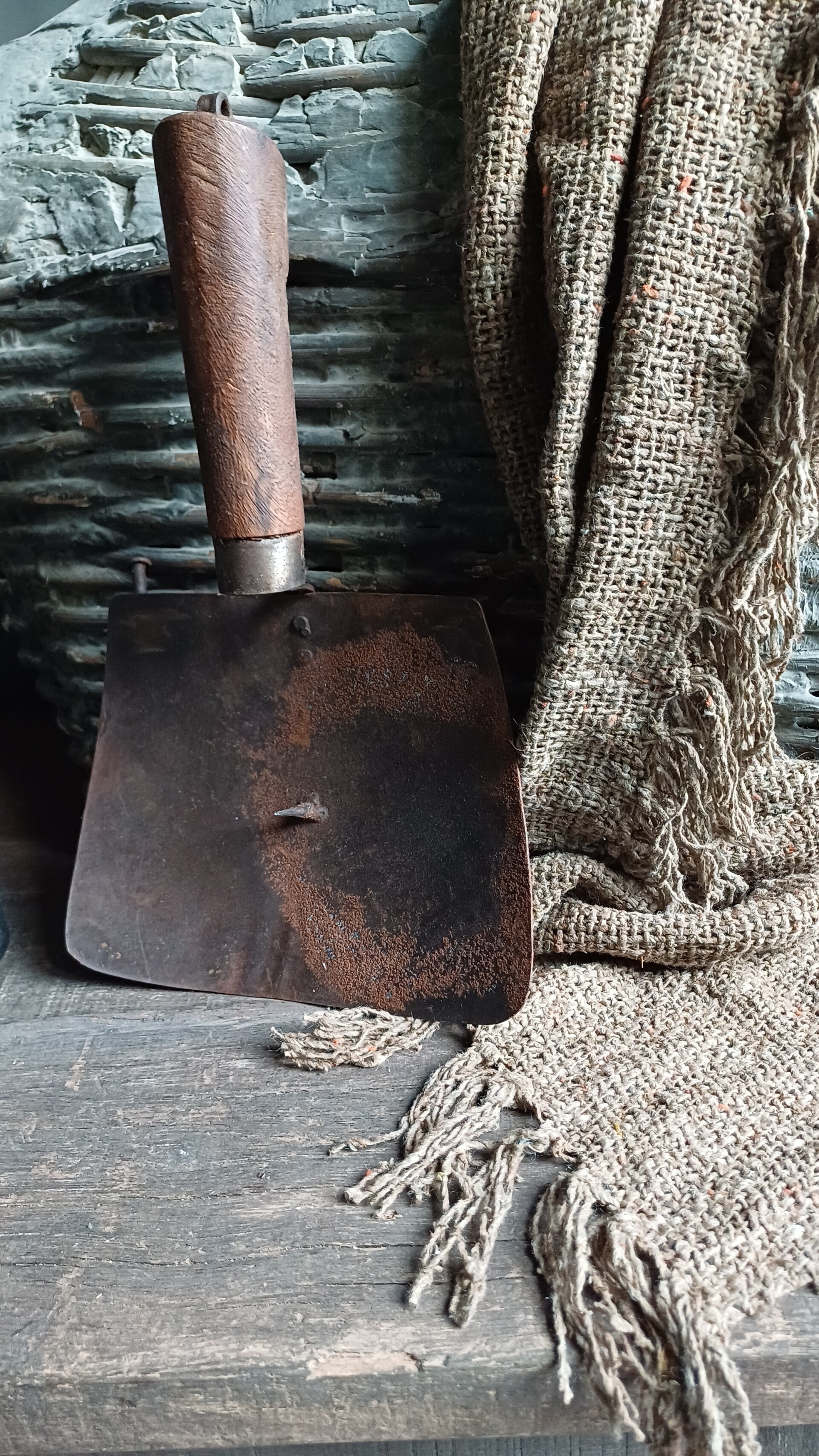 super aantrekkelijke kandelaar/blaker in de vorm van een schepje Metaal met houten handvat. Met pin voor het plaatsen van een echte kaars.