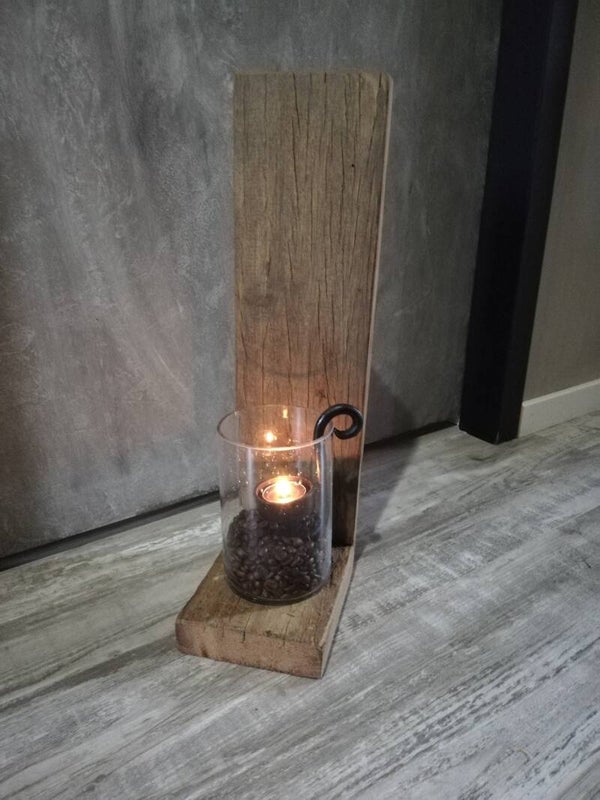 Wandplank van truckwood mooie zware kwaliteit. door de haakjes prima te bevestigen tegen de wand of standalone neer zetten.