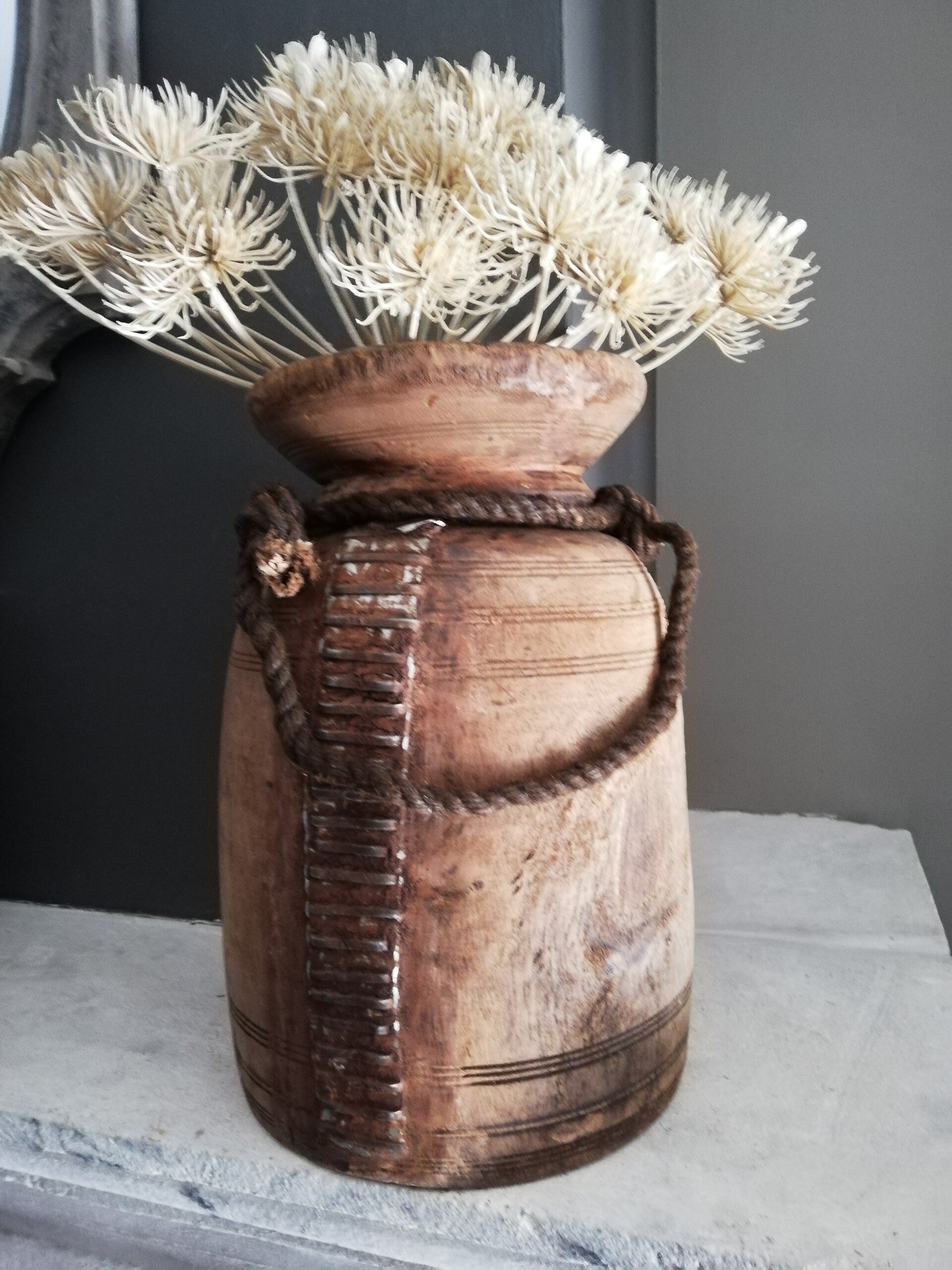 Nepalese houten pot met de hand gemaakt, mooi als decoratie