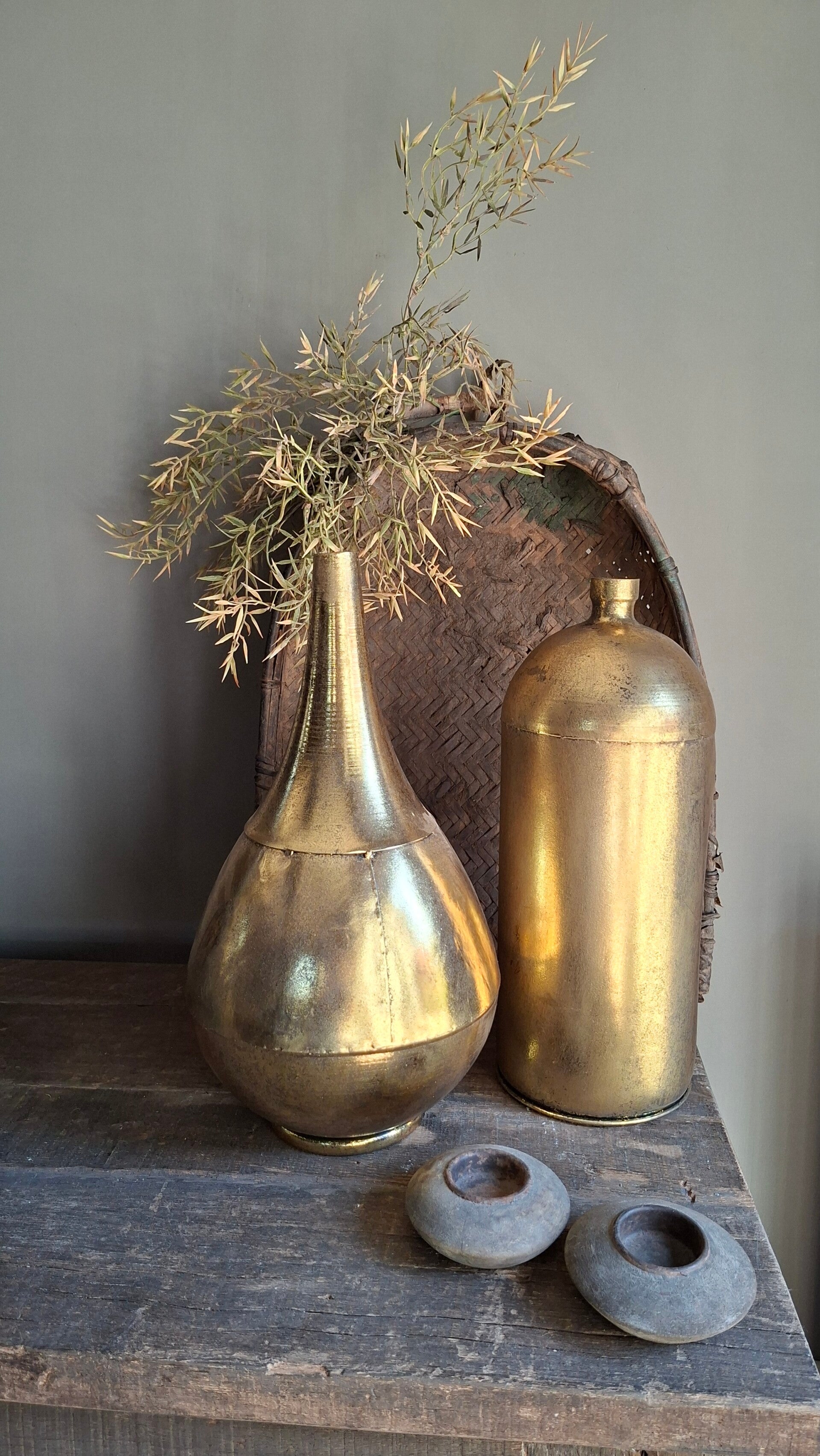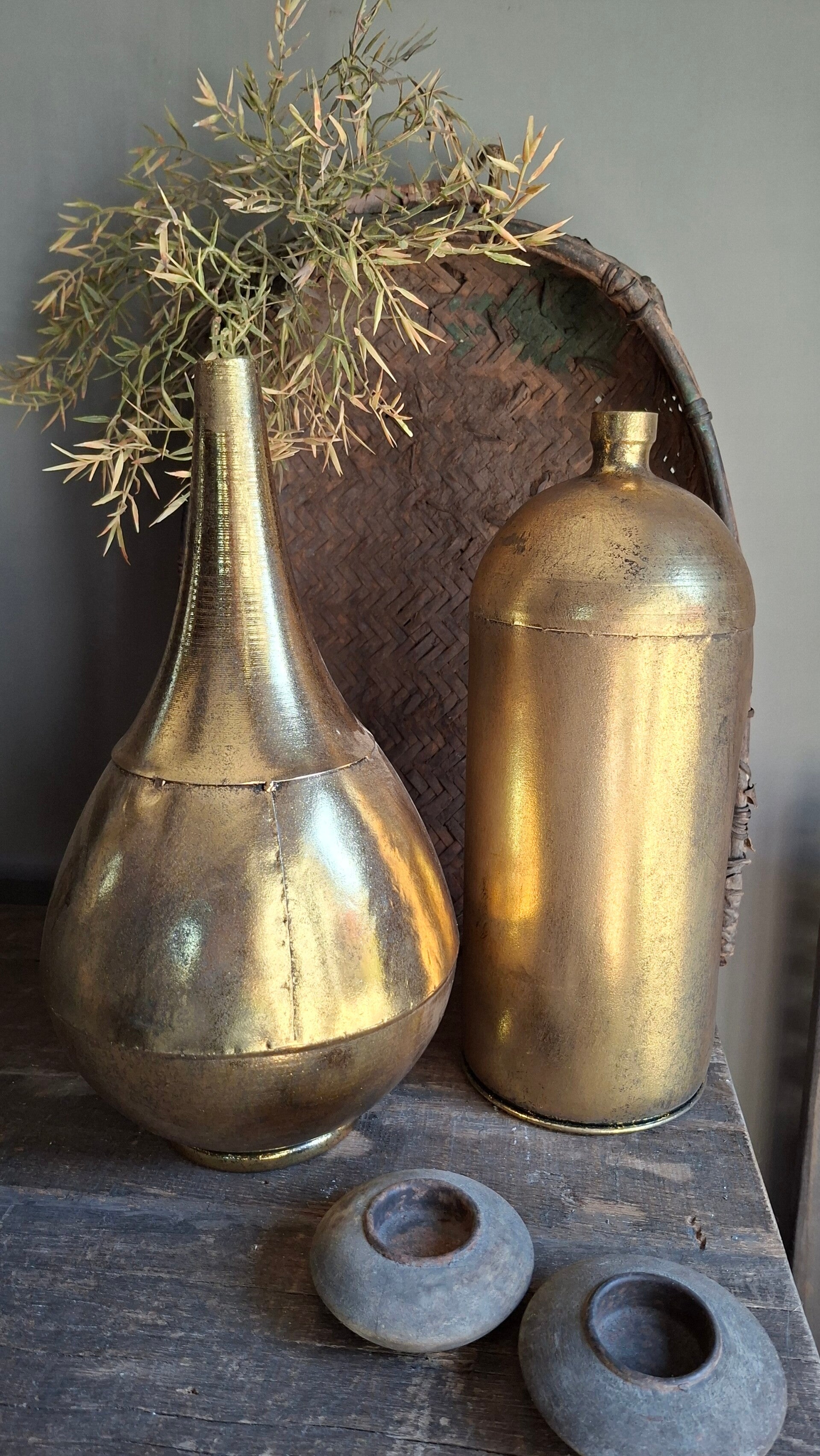 Mooie set van 2 verschillende vazen van metaal. Uiters geschikt voor alleen droogbloemen of een tak. (niet voor water)