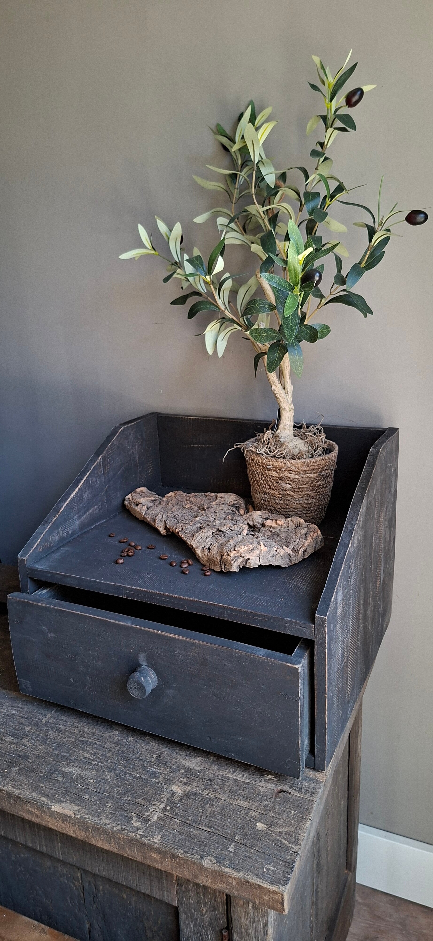 Mooi koffieapparaat plateau met lade heeft een opstaande rand, erg leuk in een landelijke keuken om koffiekopjes, suiker en melk potje op te zetten, zelfs met een mooi plantje is dit plateau veelzijdig inzetbaar.