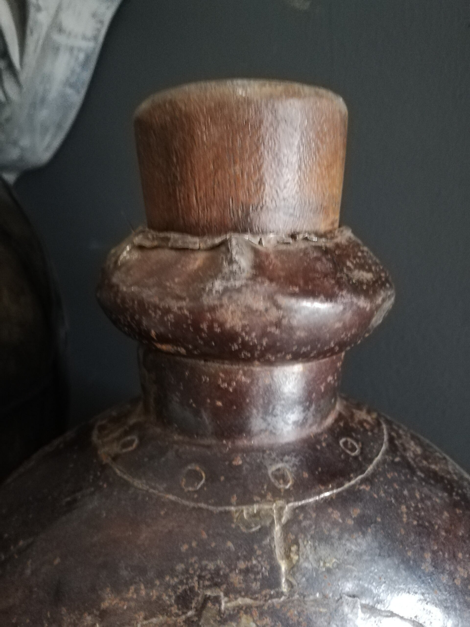 Deze waterkruik is van metaal, zoals op foto kun je zien dat die plat rond is.