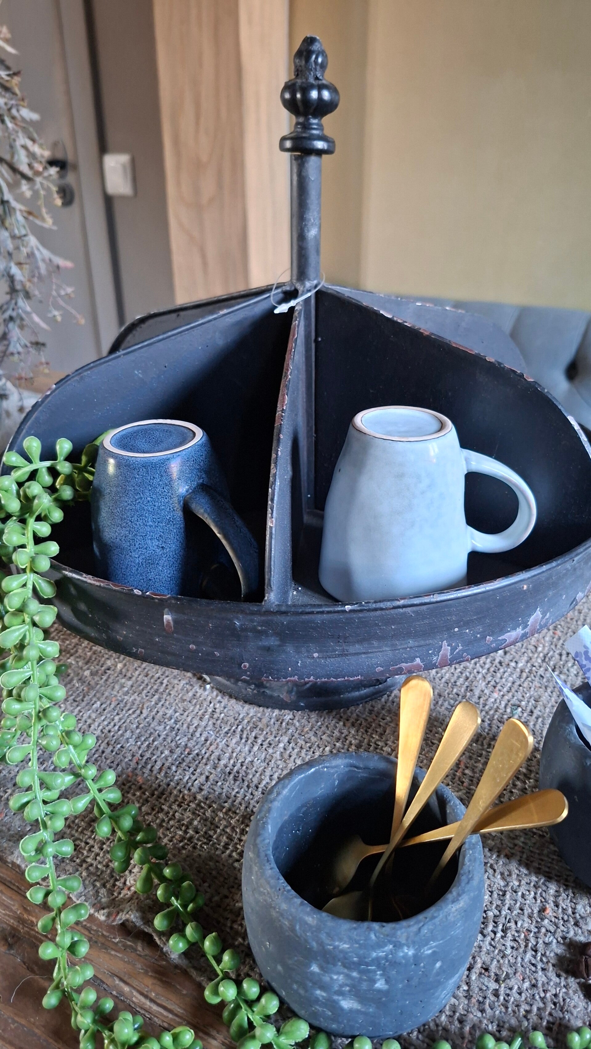 Deze zwarte etagère heeft een verweerde look, wat hem een stoere en robuuste uitstraling geeft. De verschillende vakken zorgen voor net dat beetje extra. Je kunt er bijvoorbeeld fruit, koffiecups, ledkaarsen of mokken in plaatsen. Daardoor is hij veelzijdig in gebruik. De etagère wordt in doos geleverd en dient zelf in elkaar gezet te worden.