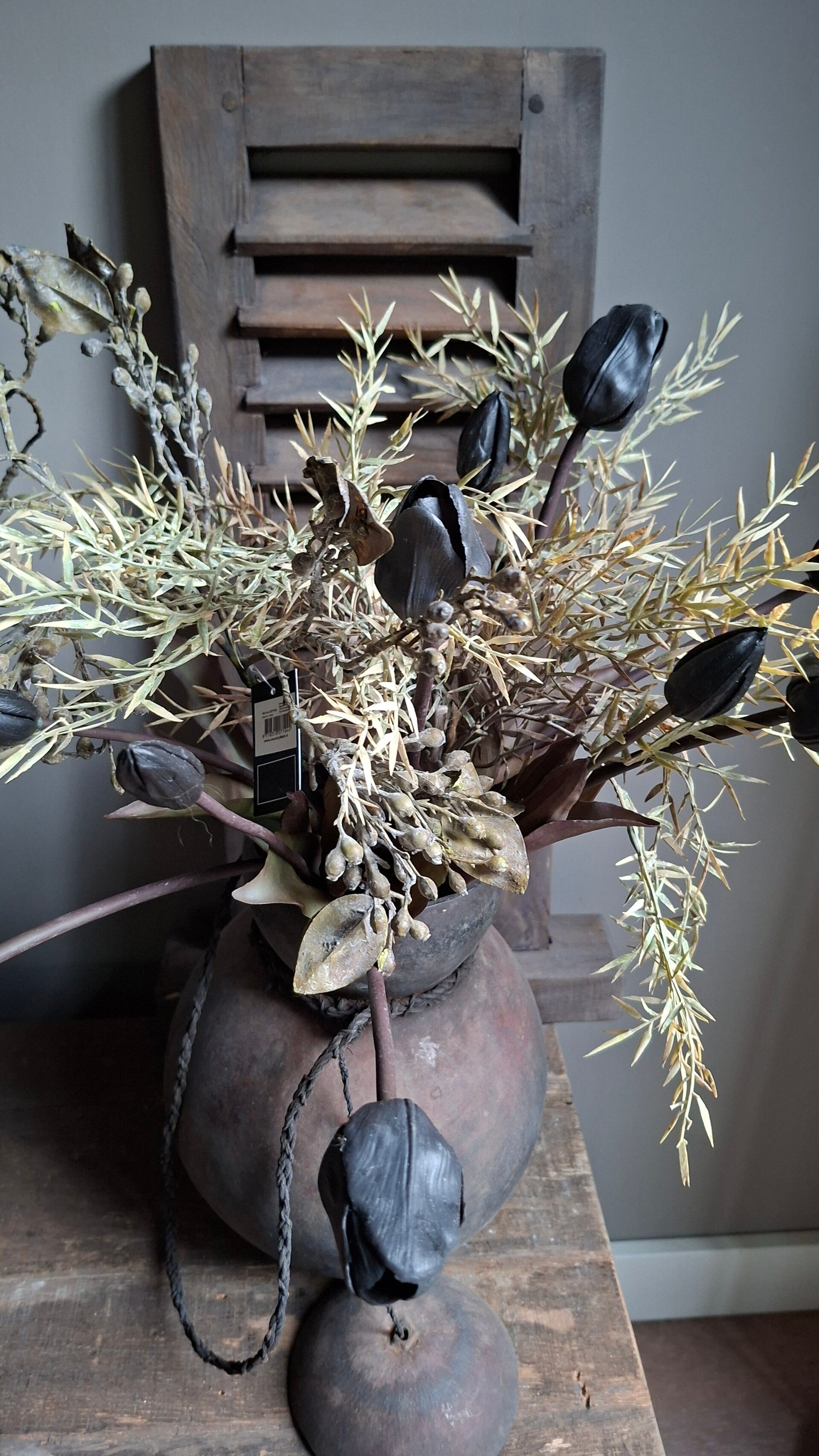 Boeket landelijk met 10 kunsttulpen en 2 mooie takken. Perfect voor op tafel, als decoratie of als blijvend cadeau dat jarenlang mooi blijft.