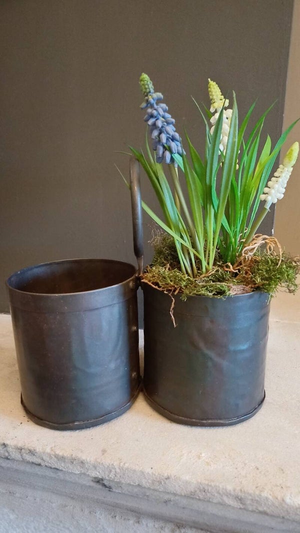 Hoe leuk is deze metalen bestekpot. Je kunt hem naar elk seizoen decoreren. Voor nu de lente, wat erg leuk op een paas tafel staat.