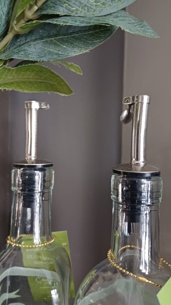 Glazen navulfles voor olijfolie.