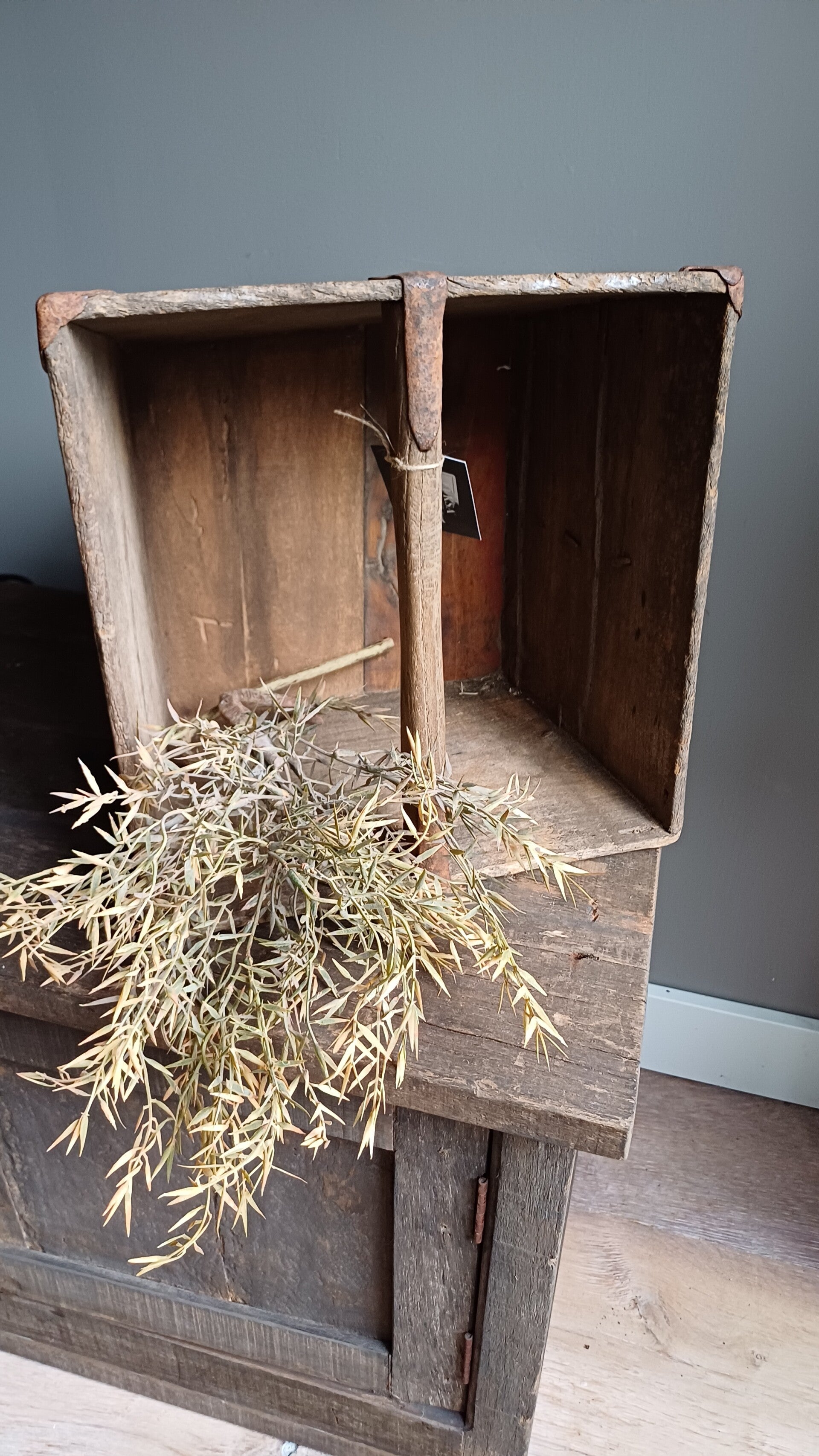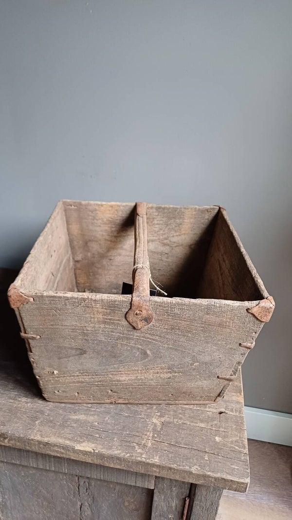 de stoere handgreep geeft de oude rijstbak een robuuste look,