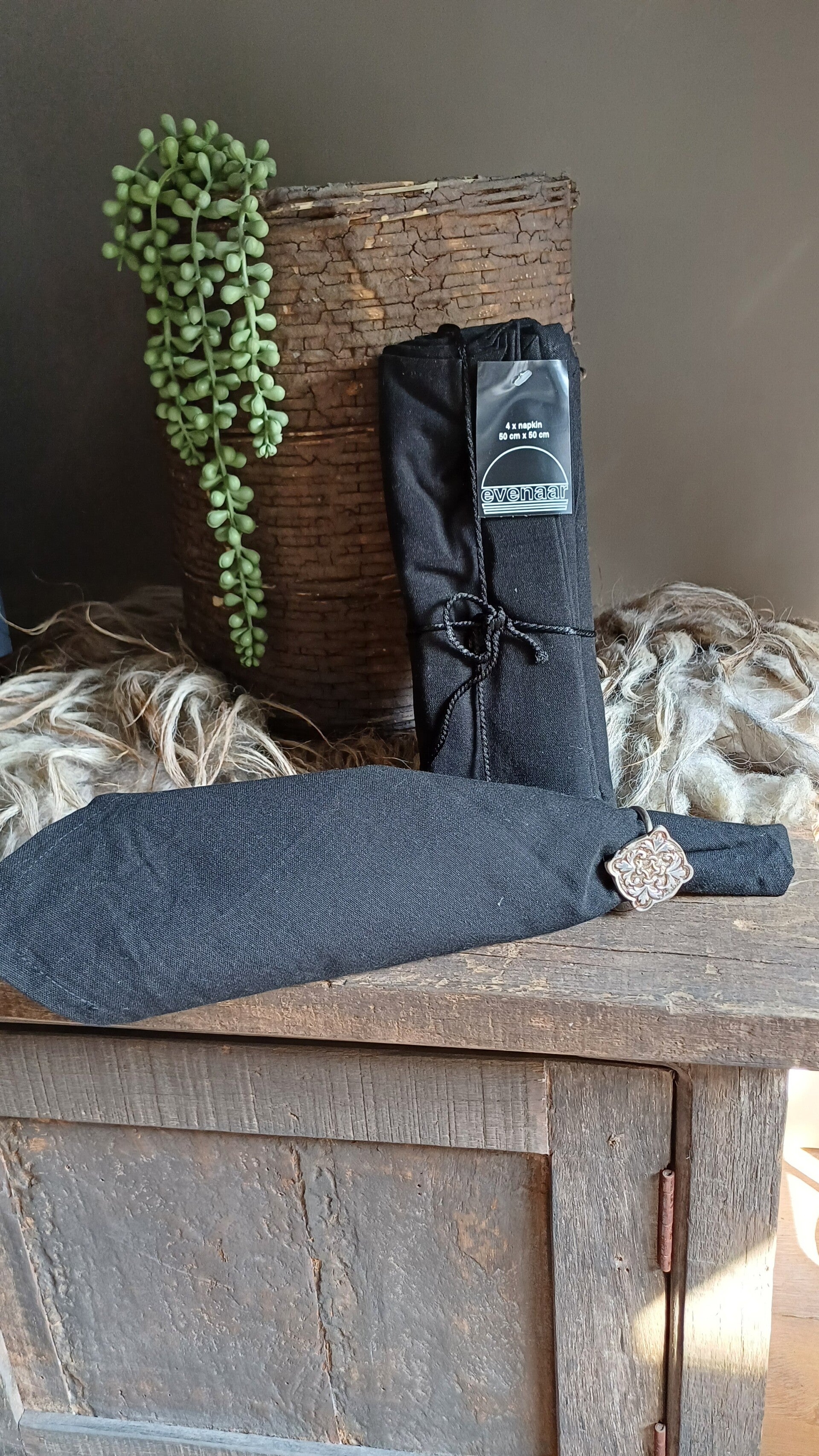 Mooie stevige 100% katoenen servetten 50x50 zwart. De servetten worden zo verpakt dat het een brievenbus pakket wordt.