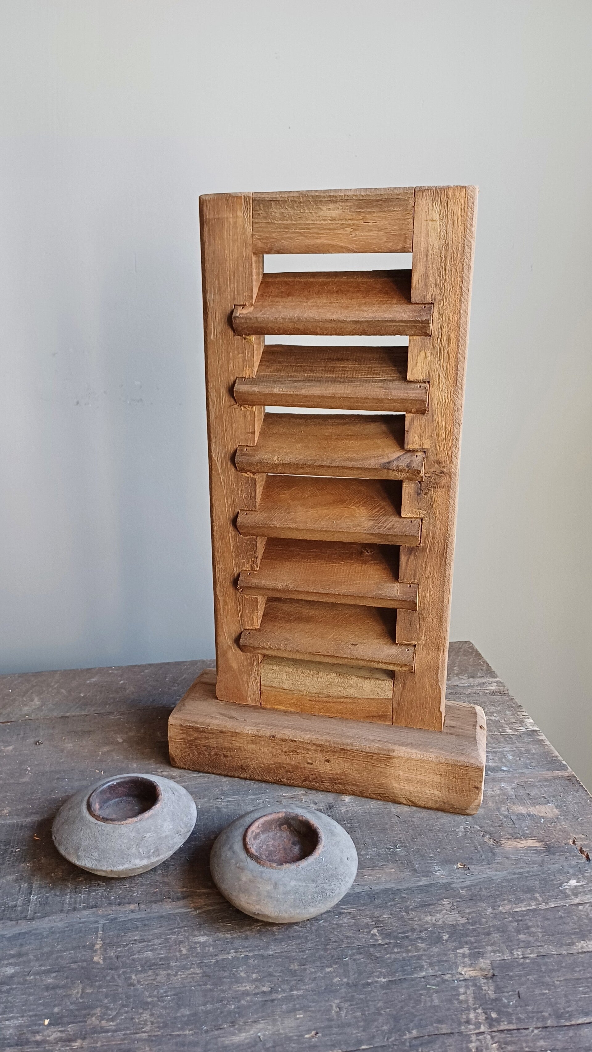 Stoer landelijk robuust louvre luikje op voet ( zware uitvoering) Deze collectie robuust en heeft oneffeheden waardoor elk luikje zijn eigen karakter heeft .