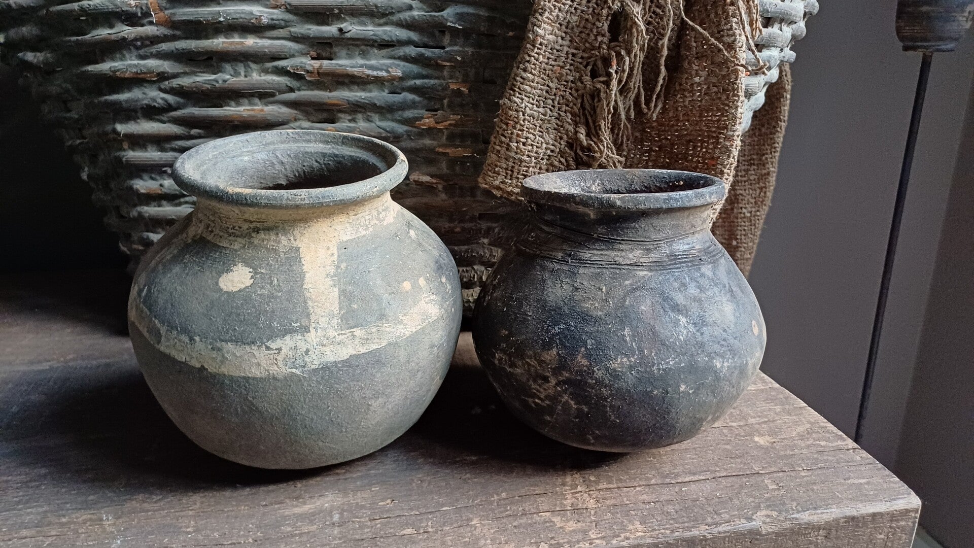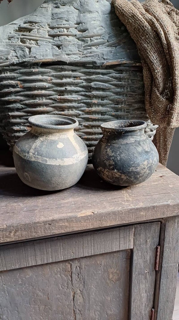 Ook wel wankel of tuimelpotje genoemd. De onderkant is iets rond dus het kruikje tuimelt wat. Heel geschikt voor op een schaal, enz. Niet 1 potje is dezelfde, elk heeft zijn eigen karakter, verschillende maten en kleur schakeringen.