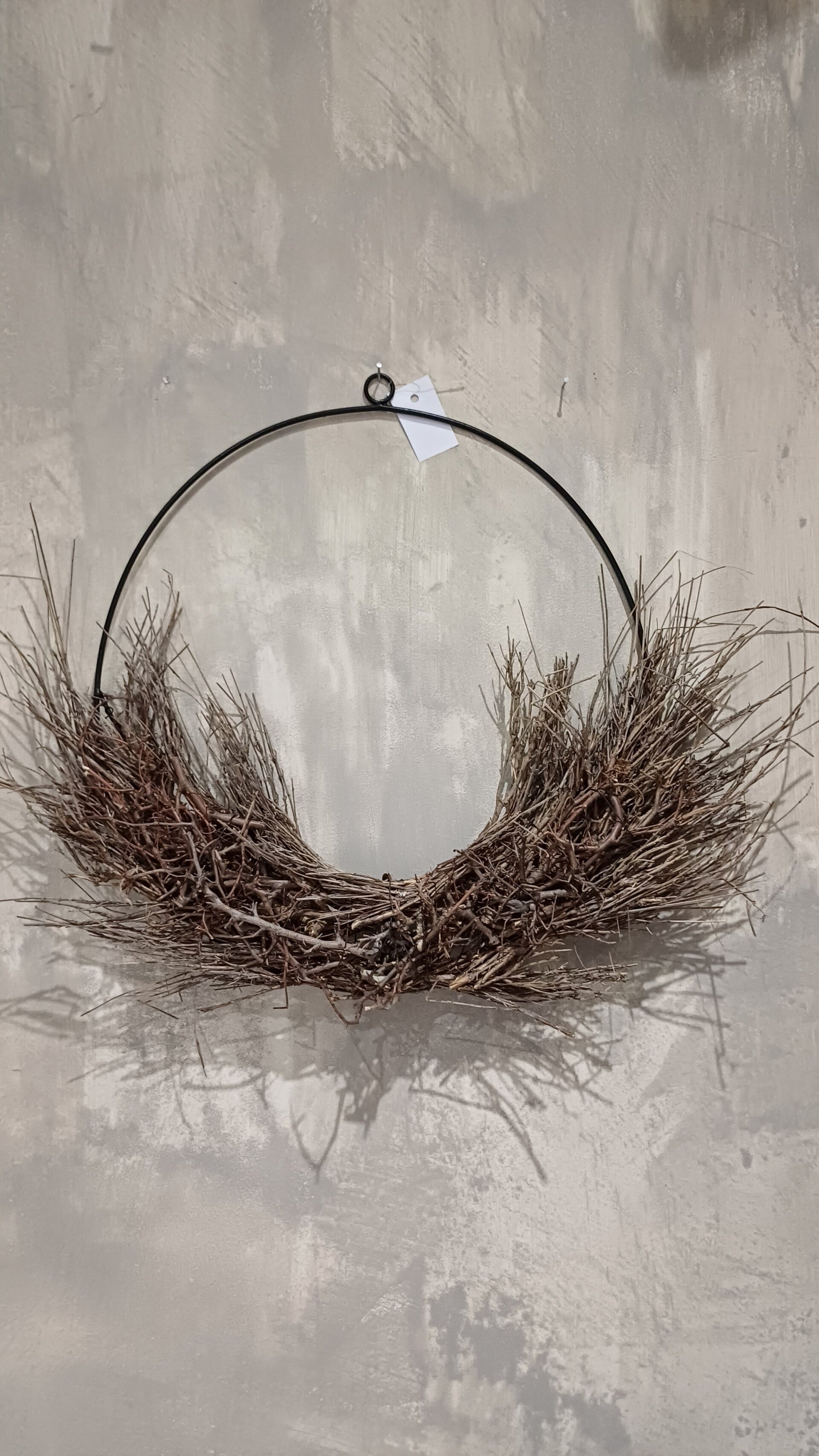 Mooie metalen cirkel met takken. Je kunt hem naar eigen smaak decoreren.