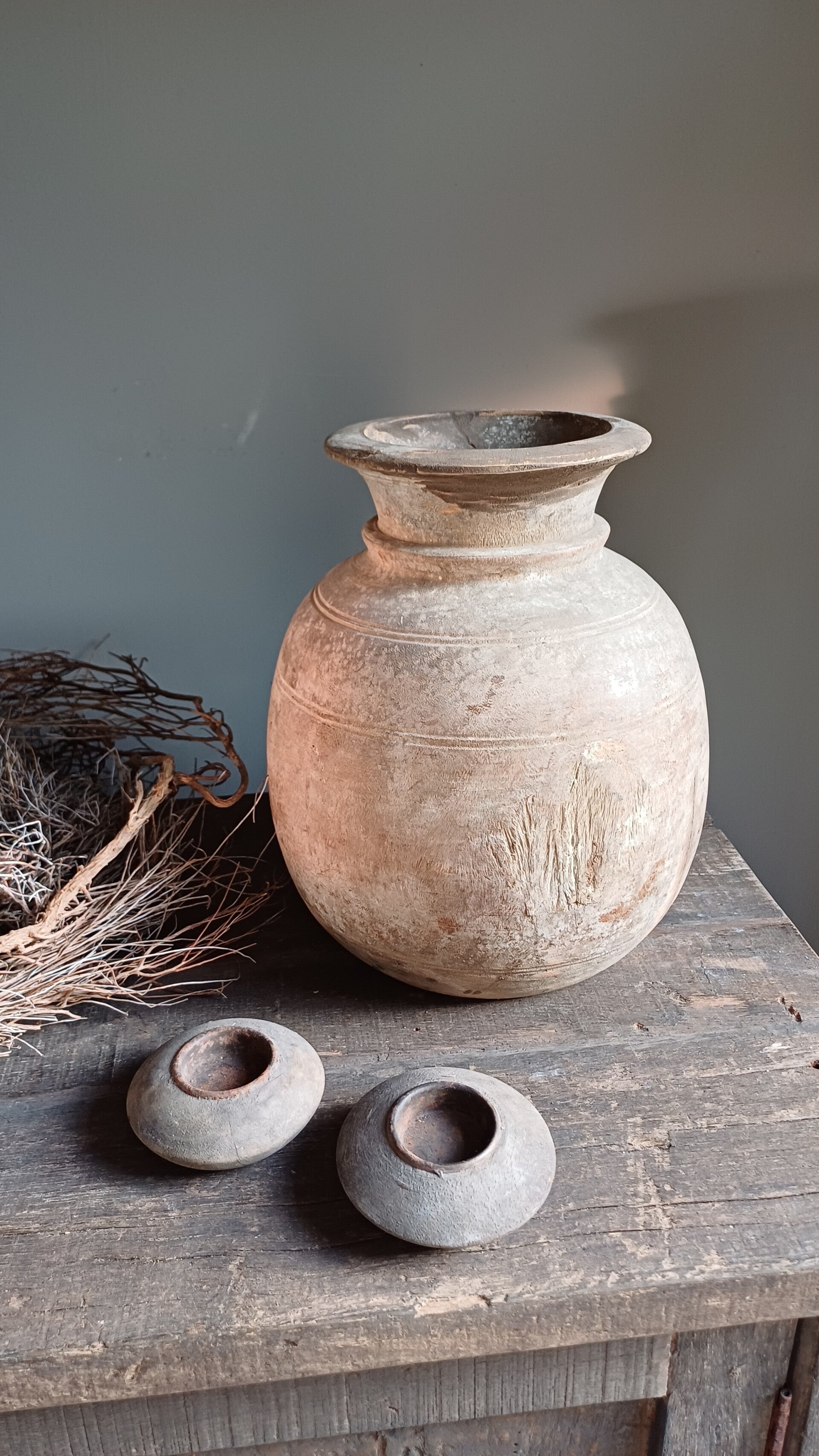 Super gave oude houten pot met een prachtige grijs/bruine kleur. Elke pot heeft zijn eigen karakter, u krijgt de pot op de foto.
