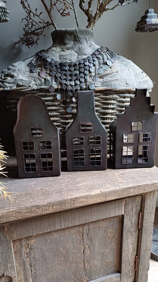 Deze gave grachtengevel huisjes van metaal zijn erg leuk om mee te decoreren. In de avond met een theelichtje geeft een gezellige sfeer.
