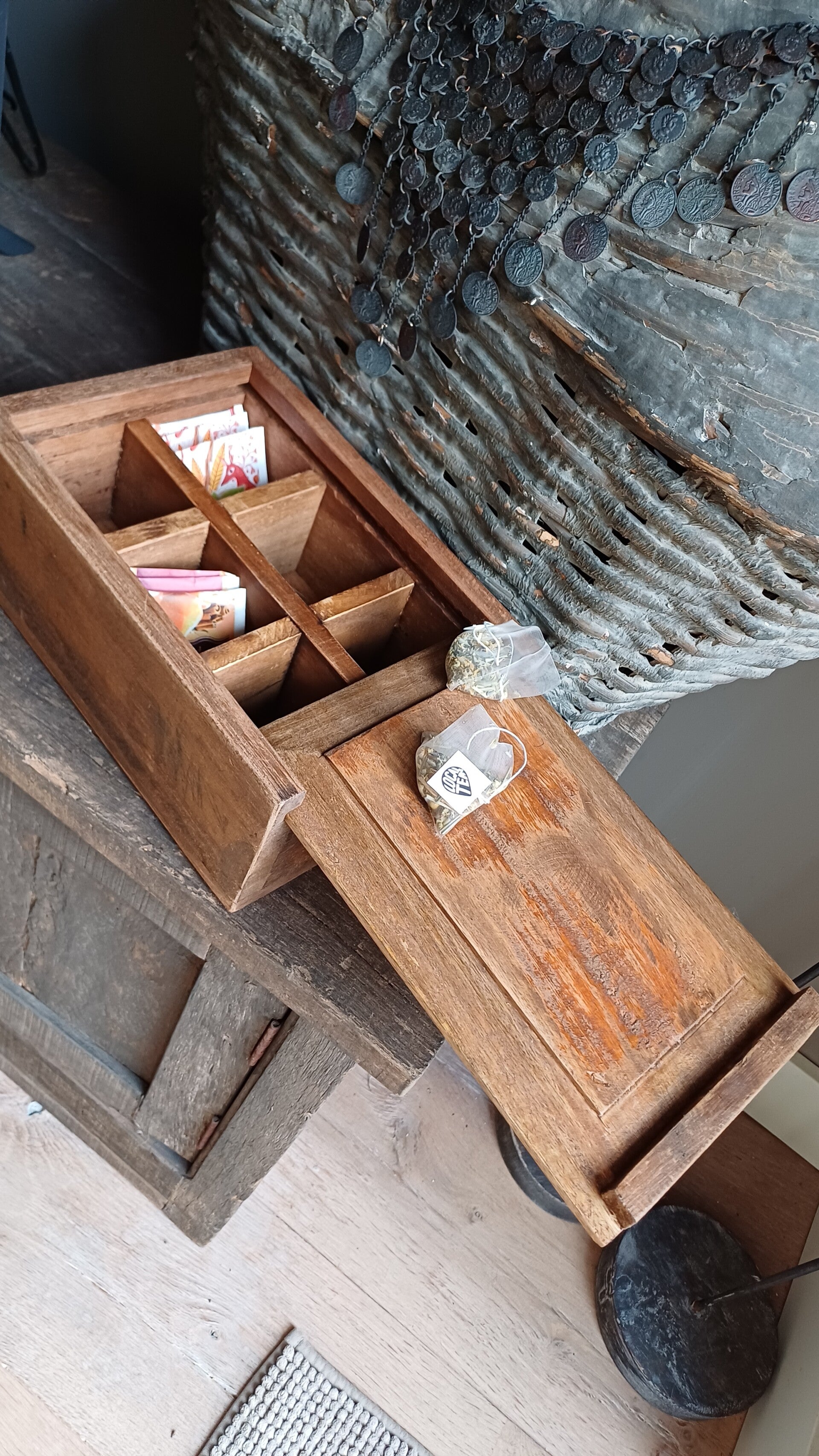 Mooi landelijk theekistje met deksel. Het kistje is van hout, dus elk kistje heeft zijn eigen karakter.