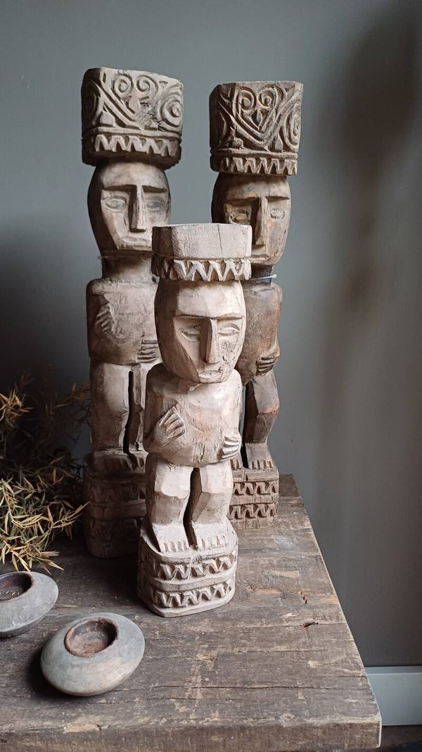 Houten beeld pop van man, Kedungu, hand gemaakt. Kan ook als kandelaar gebruikt worden.