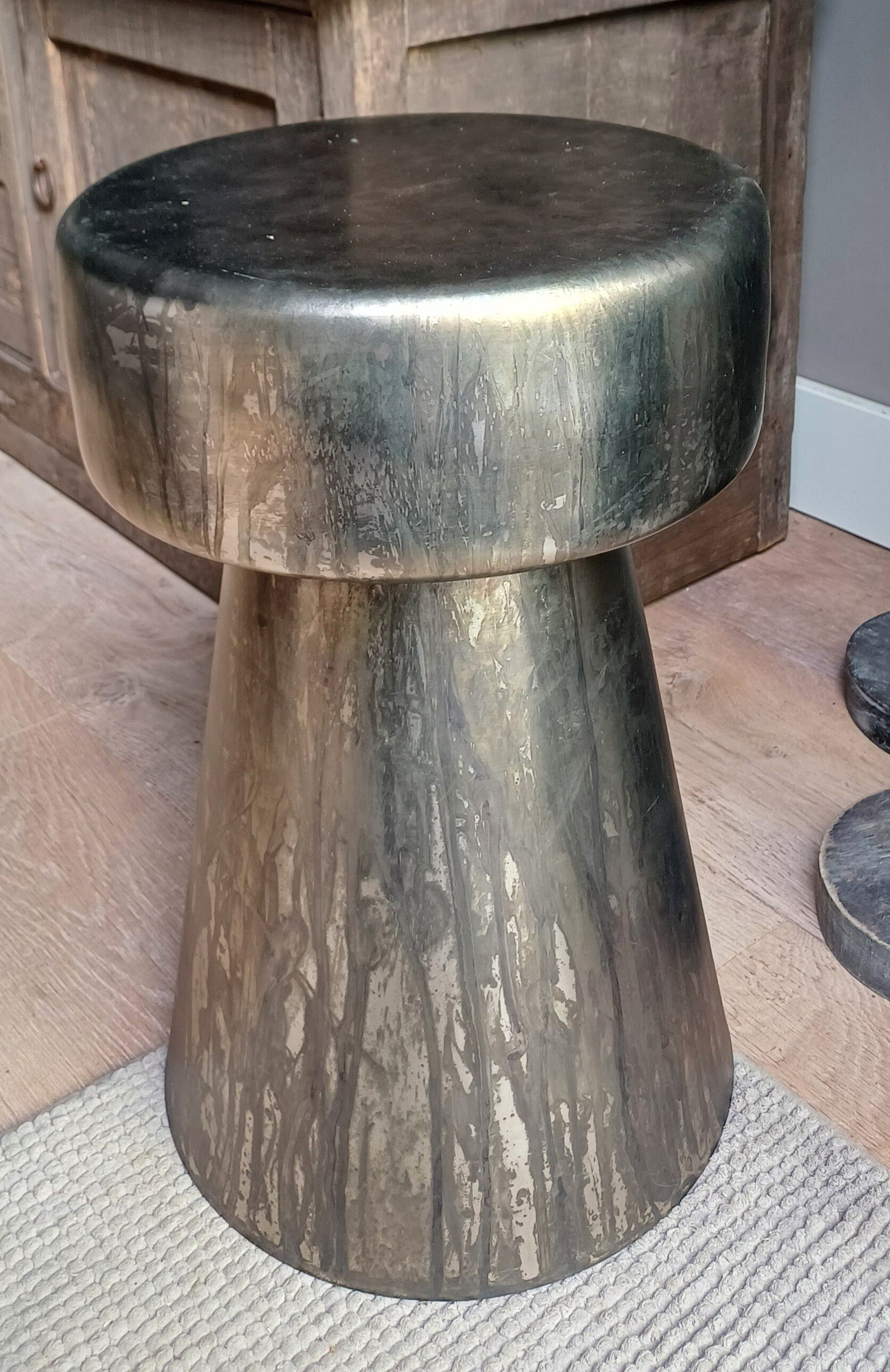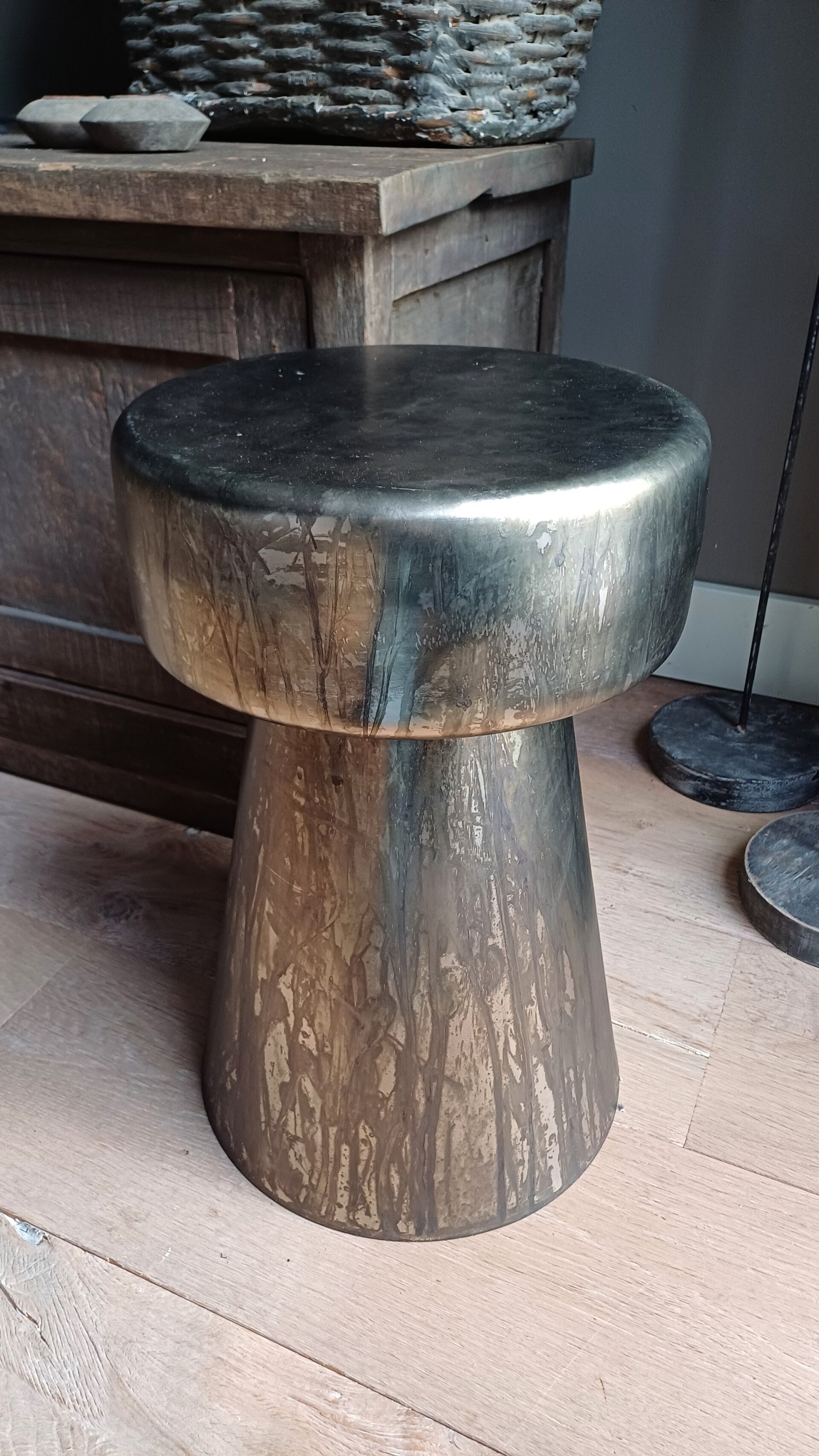 Super stoere bijzettafel nikkel antiek. Elk tafeltje is uniek.