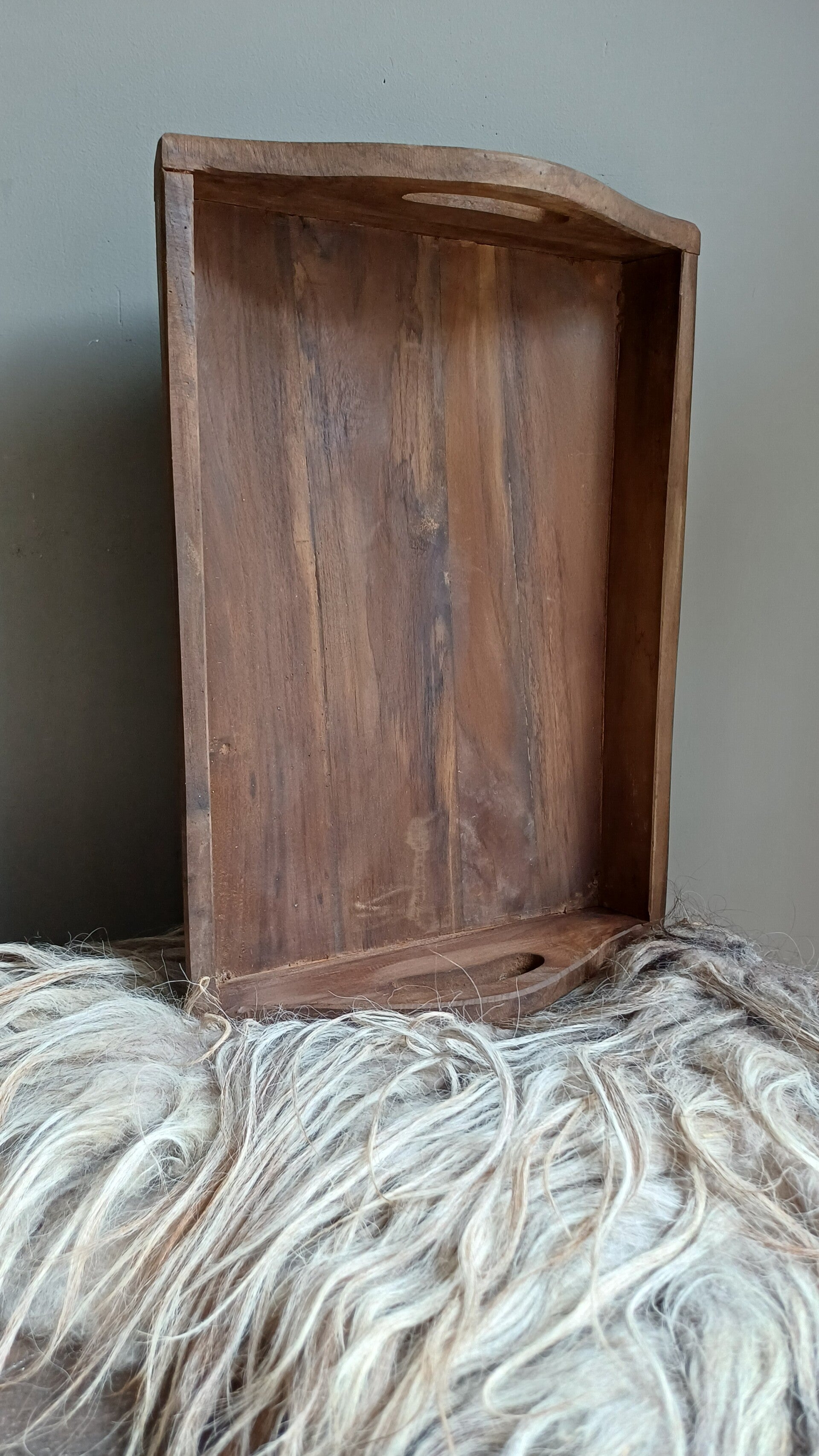 Teakhouten dienblad met opstaande rand, Landelijk robuust.