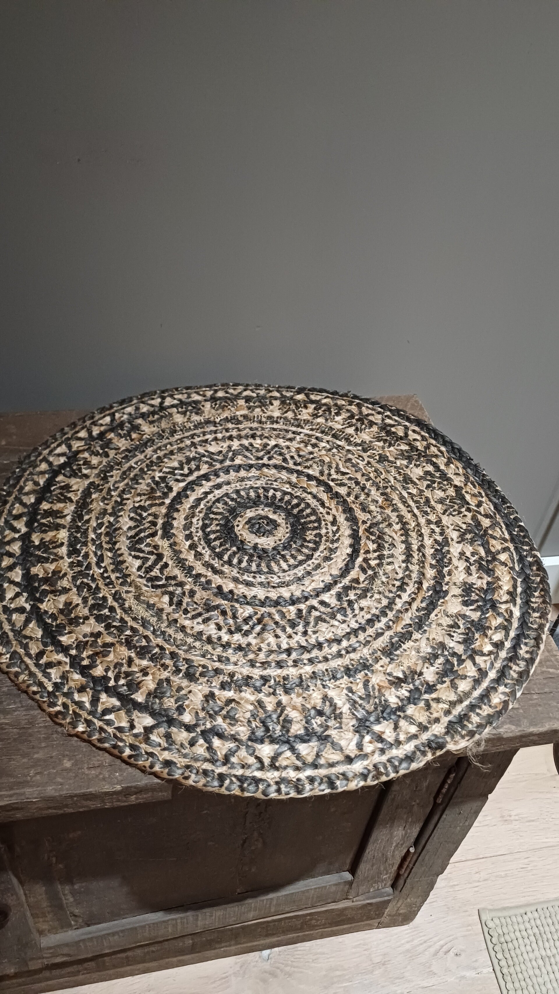 Mandala van Jute als onderzetter van een decoratie op tafel. Ook geschikt voor wanddecoratie. De doorsnee is 50CM