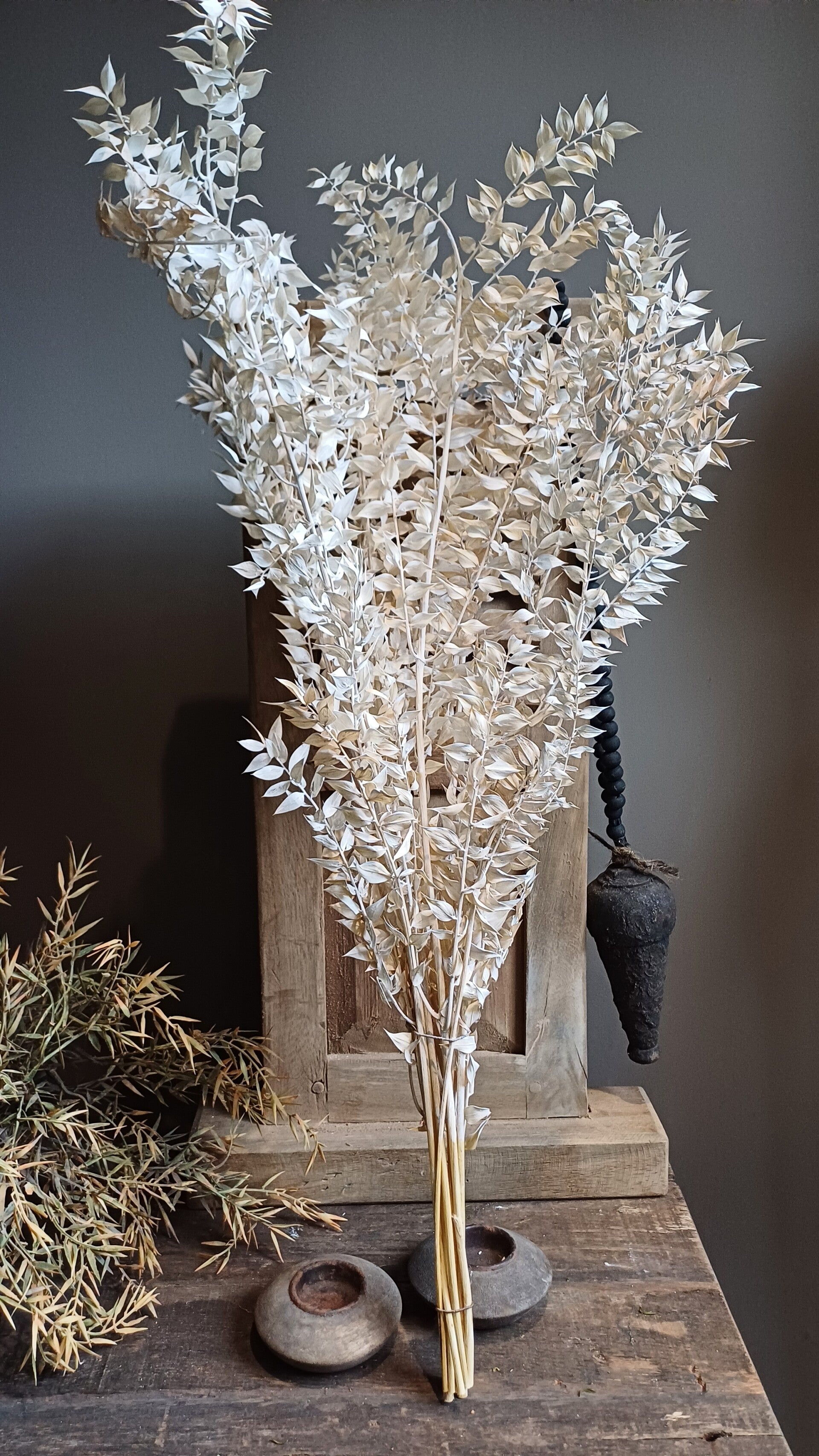 Ontdek de tijdloze schoonheid van de gebleekte Ruscus droogbloemen! Met een indrukwekkende lengte van 80 centimeter zijn deze gedroogde Ruscus, ook wel bekend als Muizendoorn, een elegante toevoeging aan elk interieur.