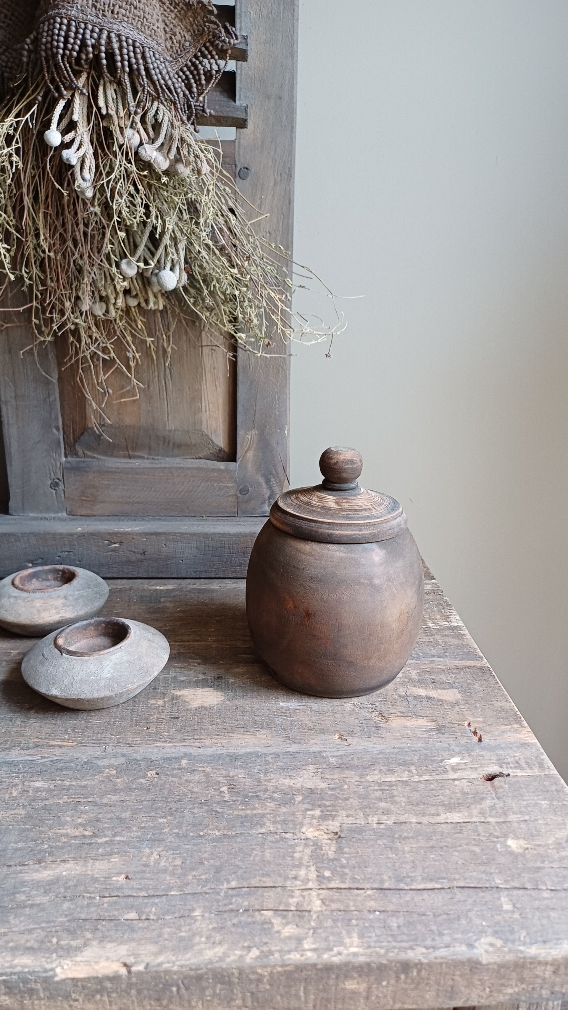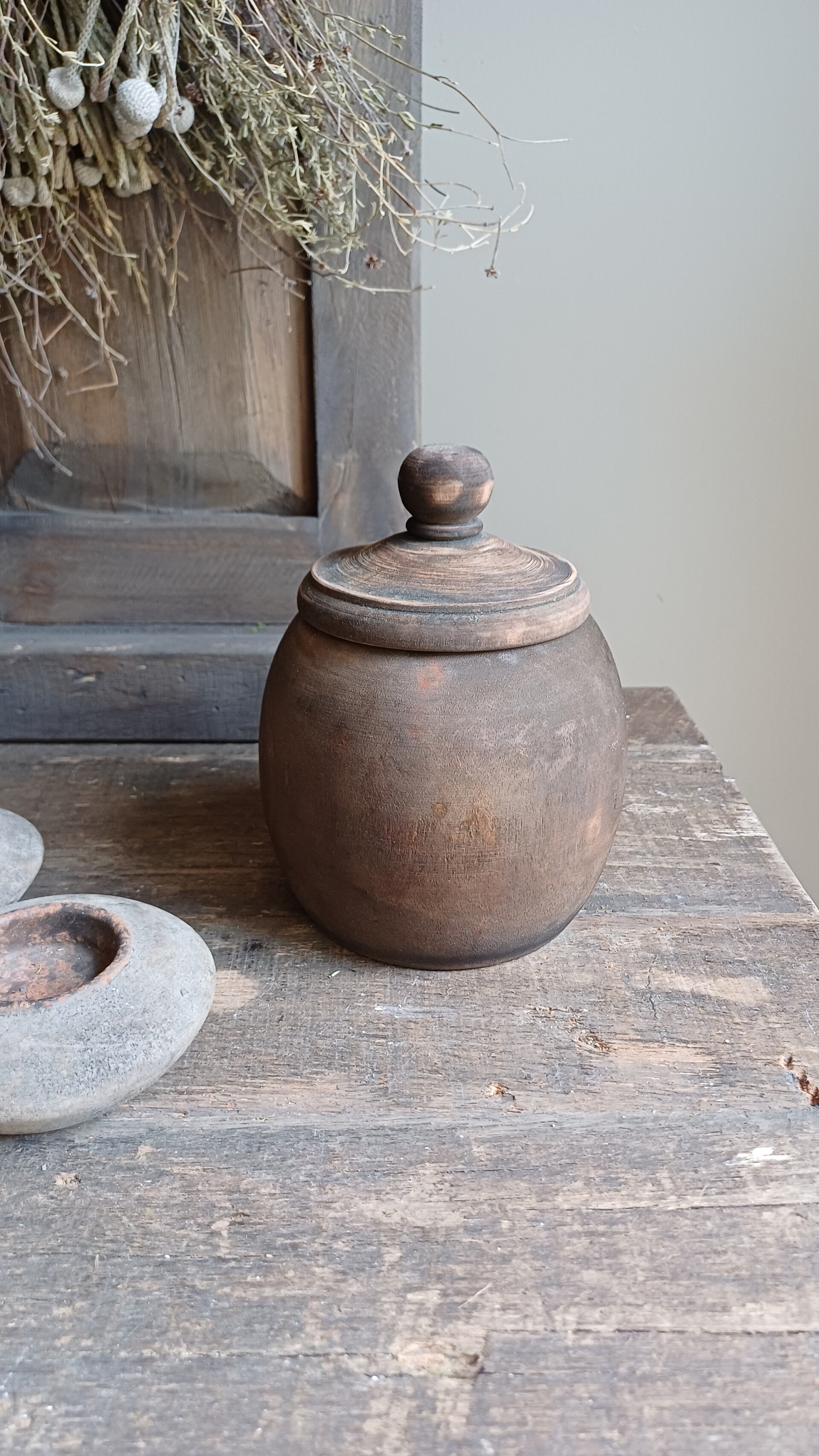 Hout potje in een mooie donkere kleur. In het echt iets donkerder dan op foto.