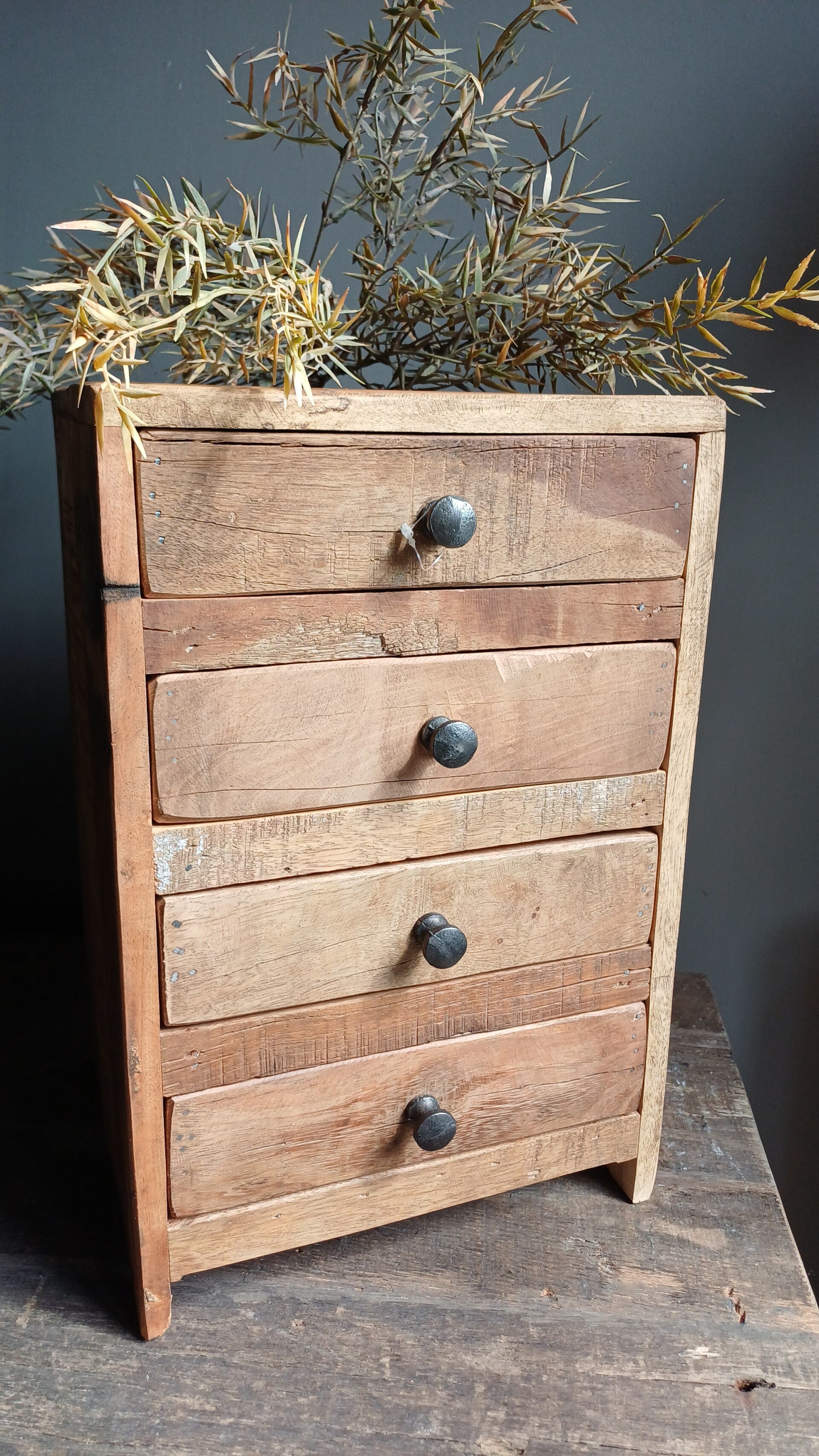 Ladekastje met 4 lade van robuust hout. Elk kastje is uniek en heeft zijn eigen karakter.