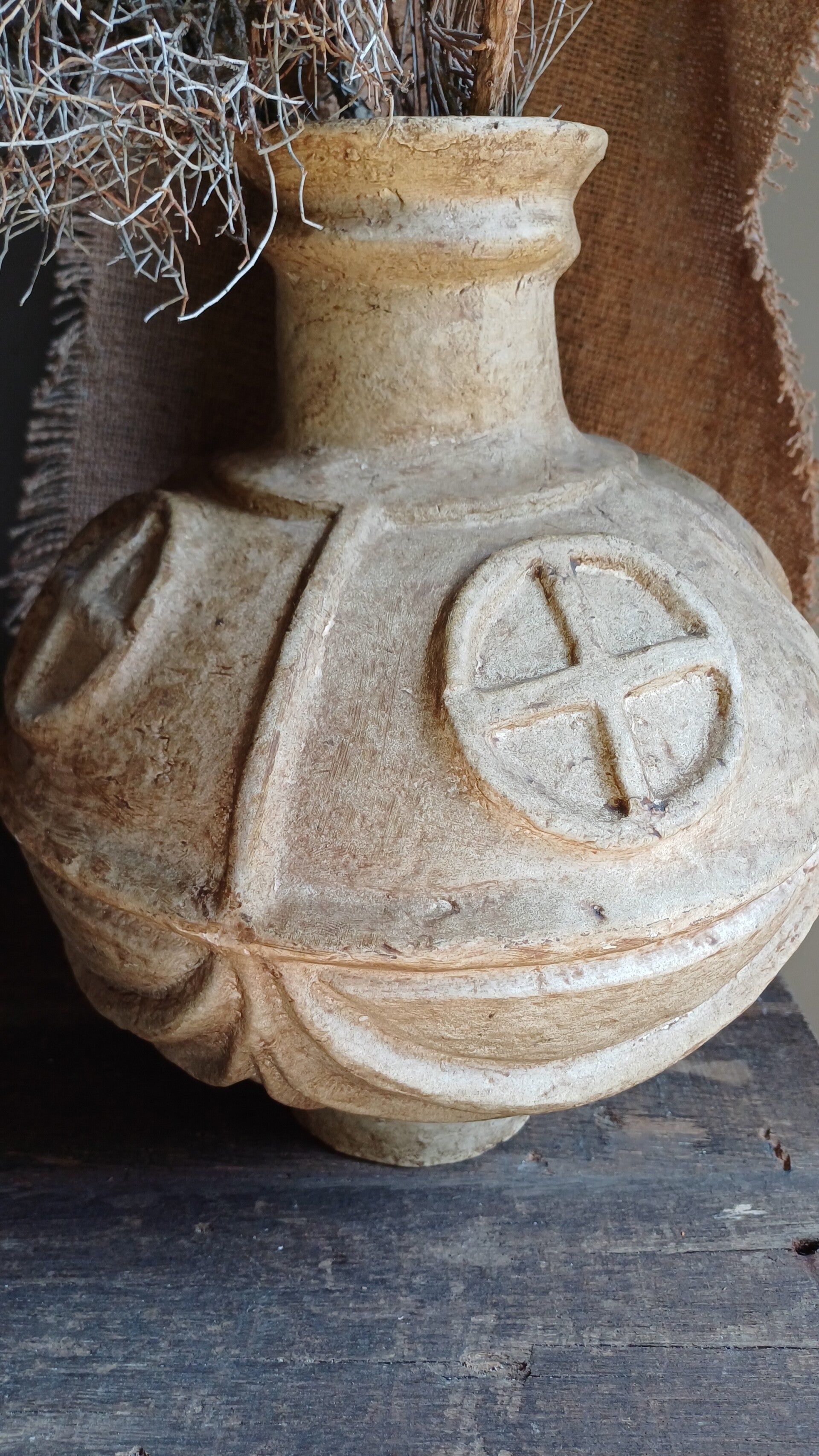 Dikke papiermaché vaas licht rustic