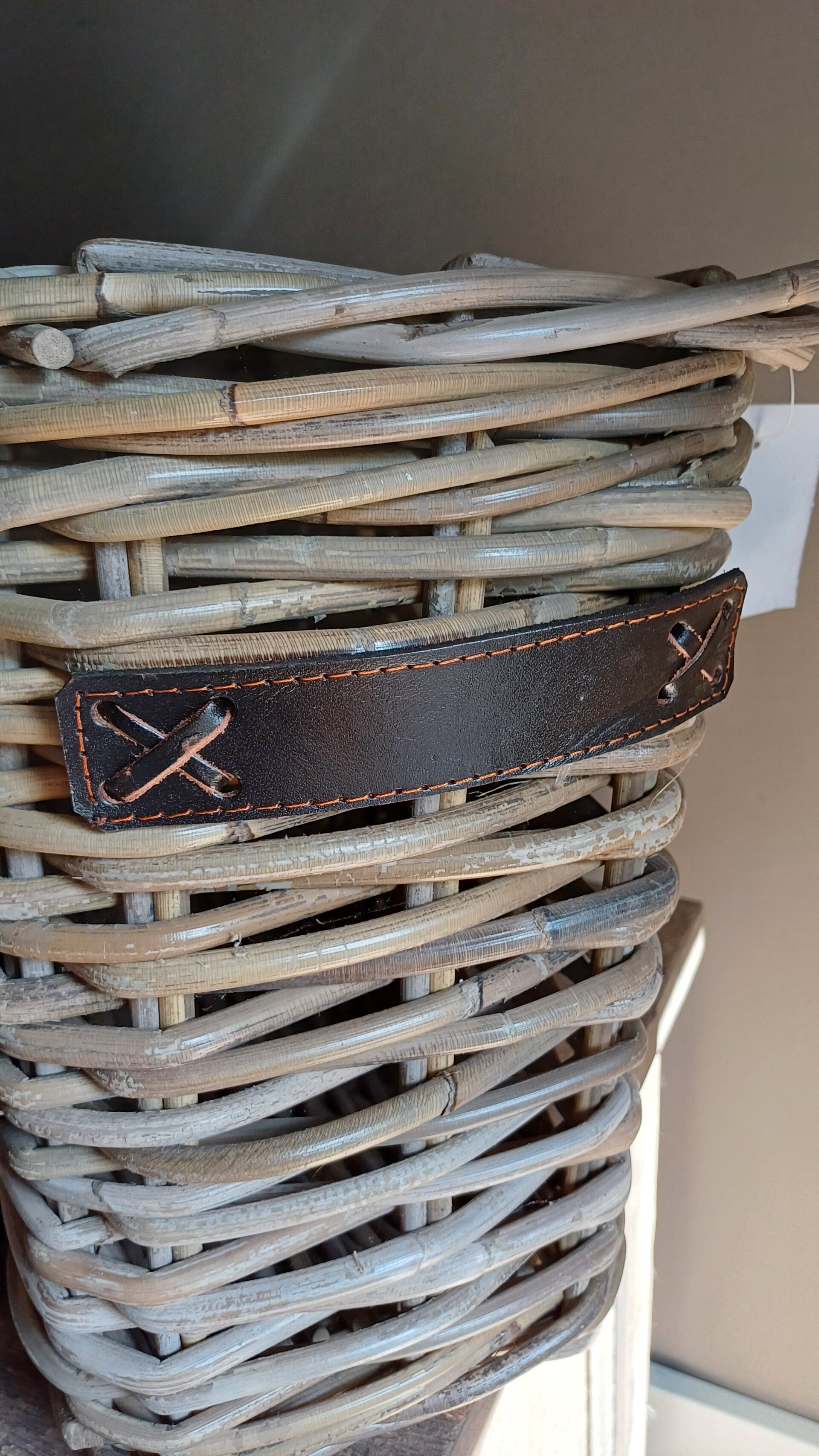 Prachtige, chique vensterbankmand voorzien van 2 lederen decoratiebandjes aan de zijkant. De aankleding van uw vensterbank wordt compleet met deze vensterbankmand. Deze mand beschikt niet over een plastic binnenhoes, maar dit is eenvoudig op te lossen door hem te voorzien van een pendaalemmerzak welke u erin kunt leggen.