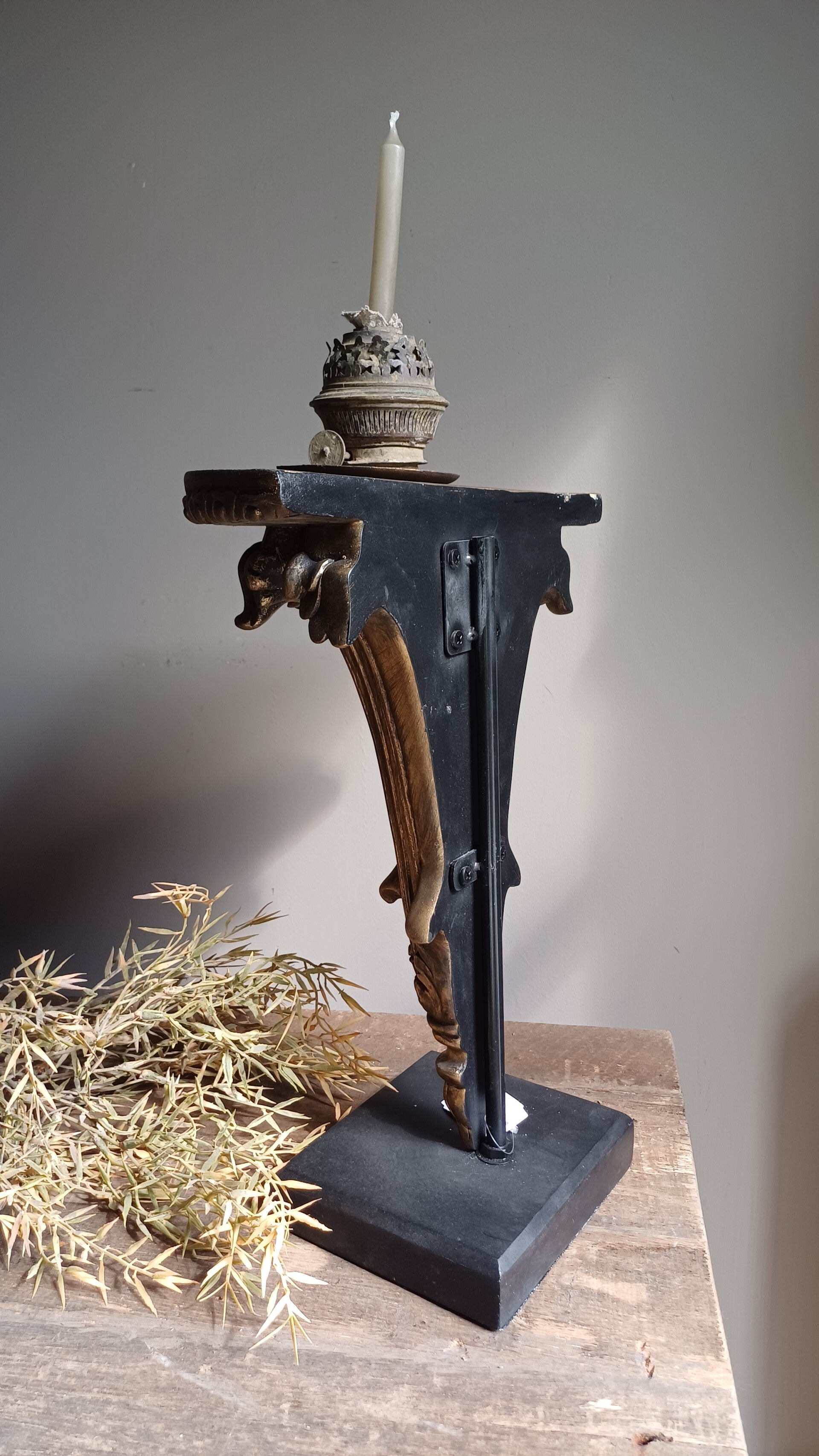 Deze gouden klassieke decopilaar is perfect voor het presenteren van een grote kaars of ander decoratief object. De warme gouden afwerking voegt een luxe uitstraling toe aan elke ruimte.