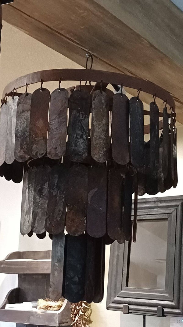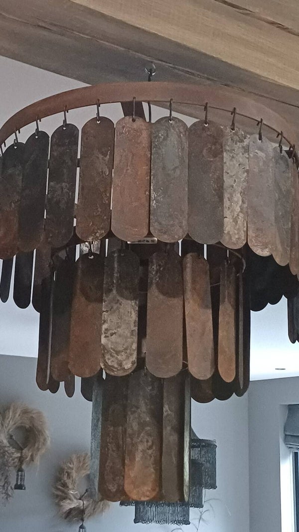 Stoere plafondlamp! Kan gelijk met het afdekkapje tegen het plafond geplaatst worden. Lamellen zijn gemêleerd en worden los erbij geleverd. (kleur kan afwijken van foto)