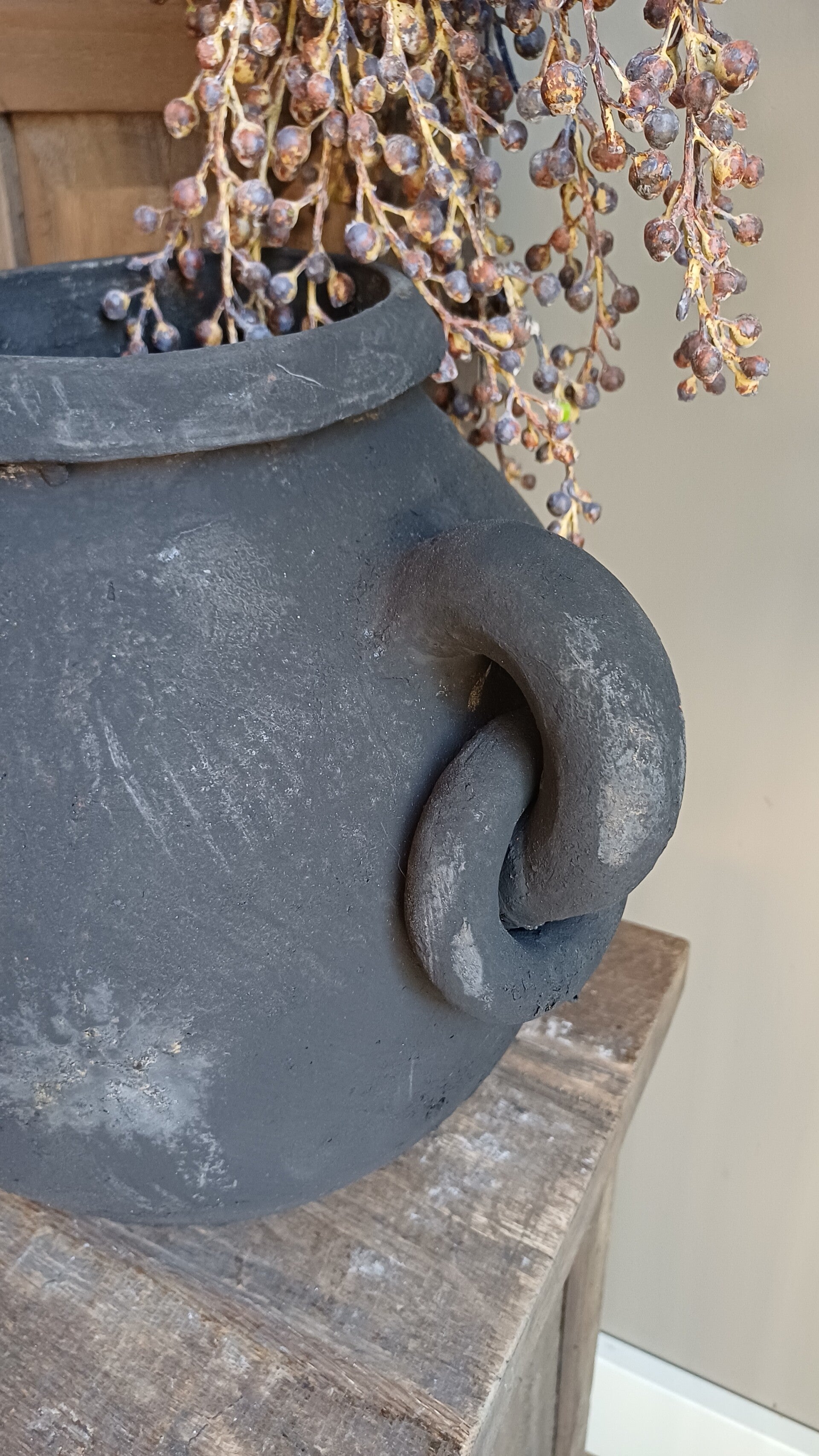 Erg mooie landelijke vaas van aardewerk in een zwart/grijs verweerde kleur. (kleur kan afwijken van foto)