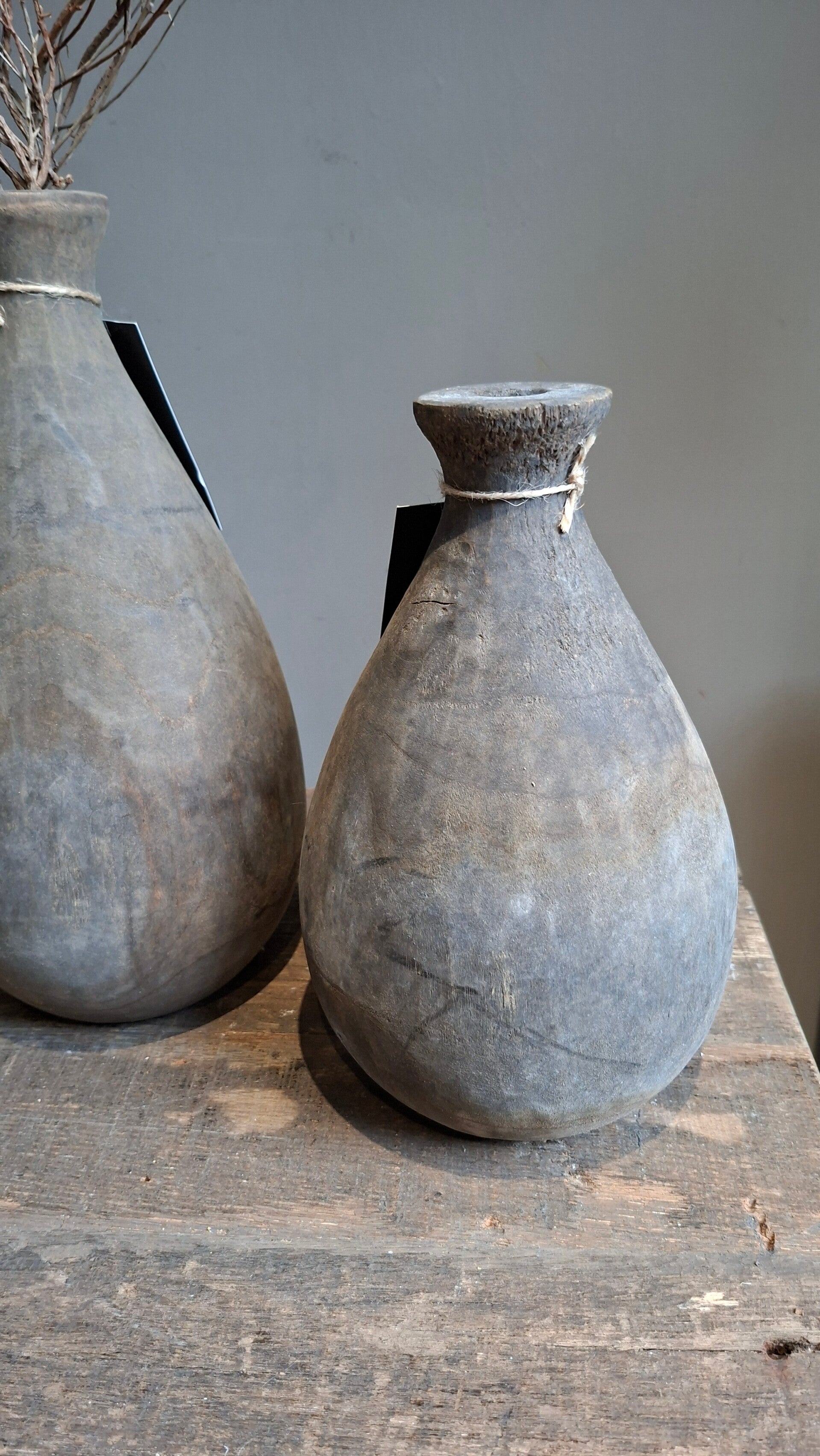 Breng warmte en karakter in je interieur met deze houten vaasmodellen van Luksa home in een robuuste, landelijke stijl. De natuurlijke houtstructuur en de stijlvolle grijze afwerking maken deze decoratieve objecten perfect voor een landelijk, industrieel, modern landelijk of rustiek interieur.