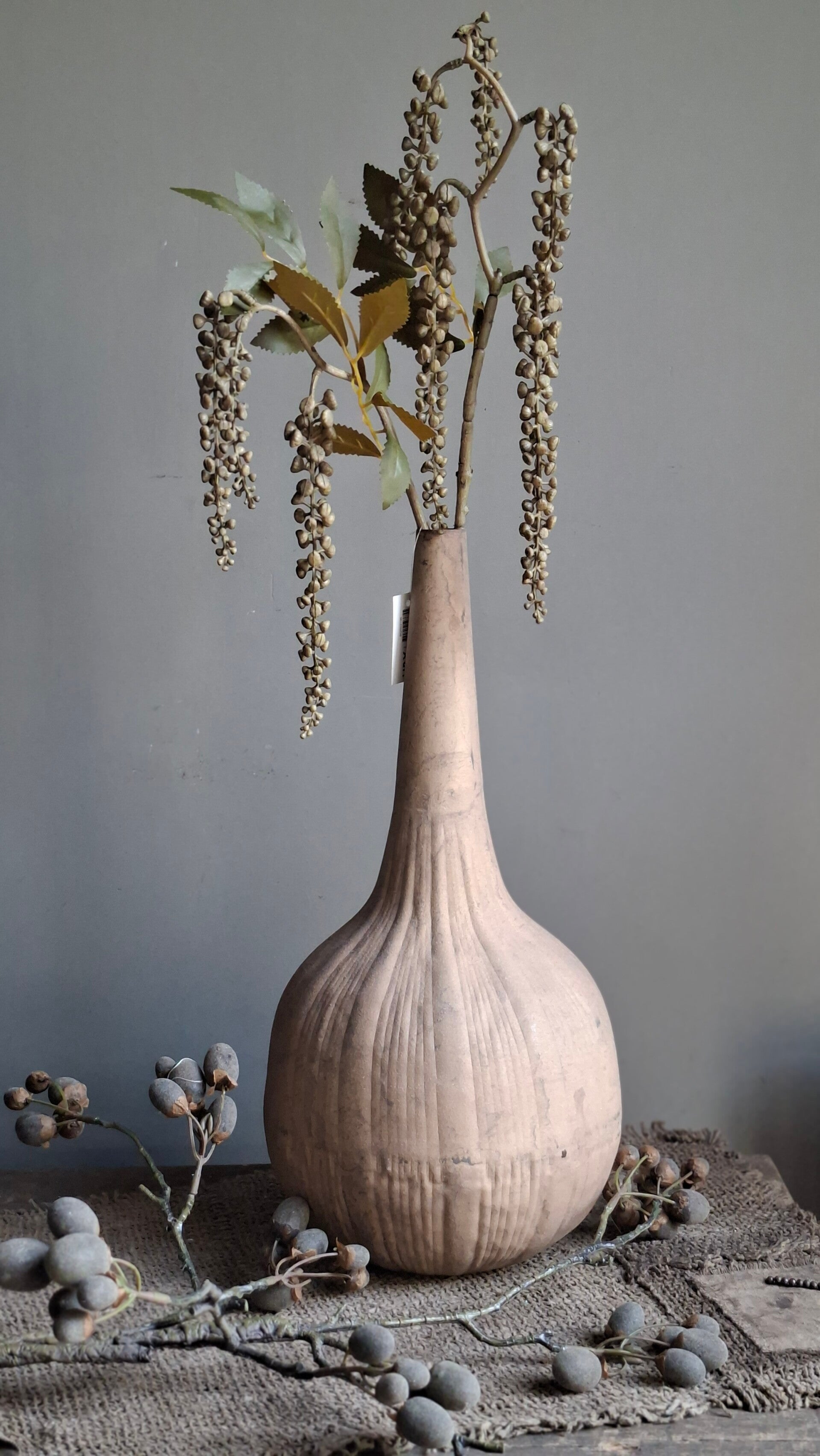metalen flespompoen, erg mooi met een enkele tak erin. De kunst tak op de foto is incl.