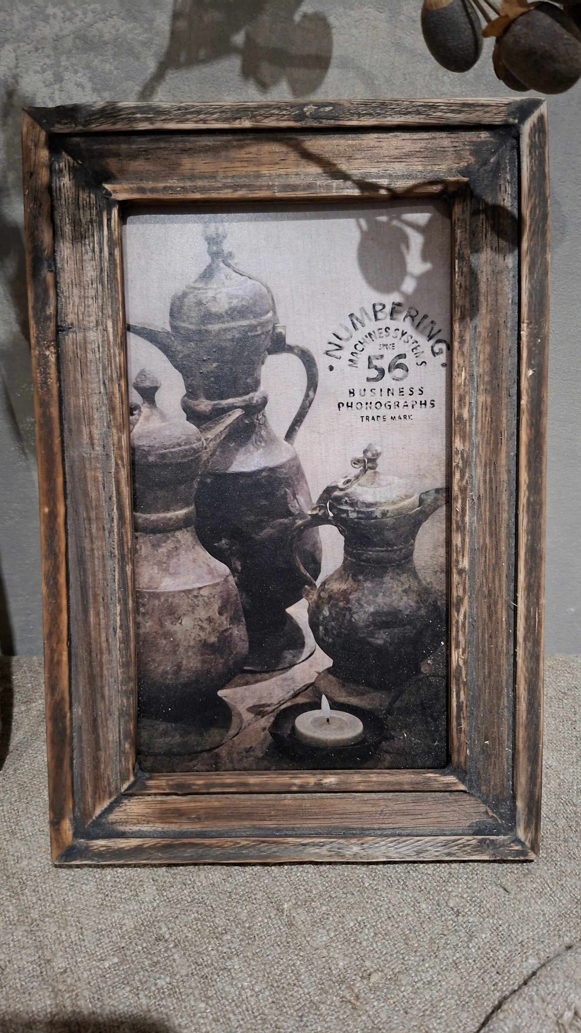 Hoe mooi staan deze 2 schilderijen kwa kleur bij elkaar. Prent zit op een houtenplaat, met een houten lijst, je kunt ze neerzetten of ophangen. (kleur kan afwijken van foto)