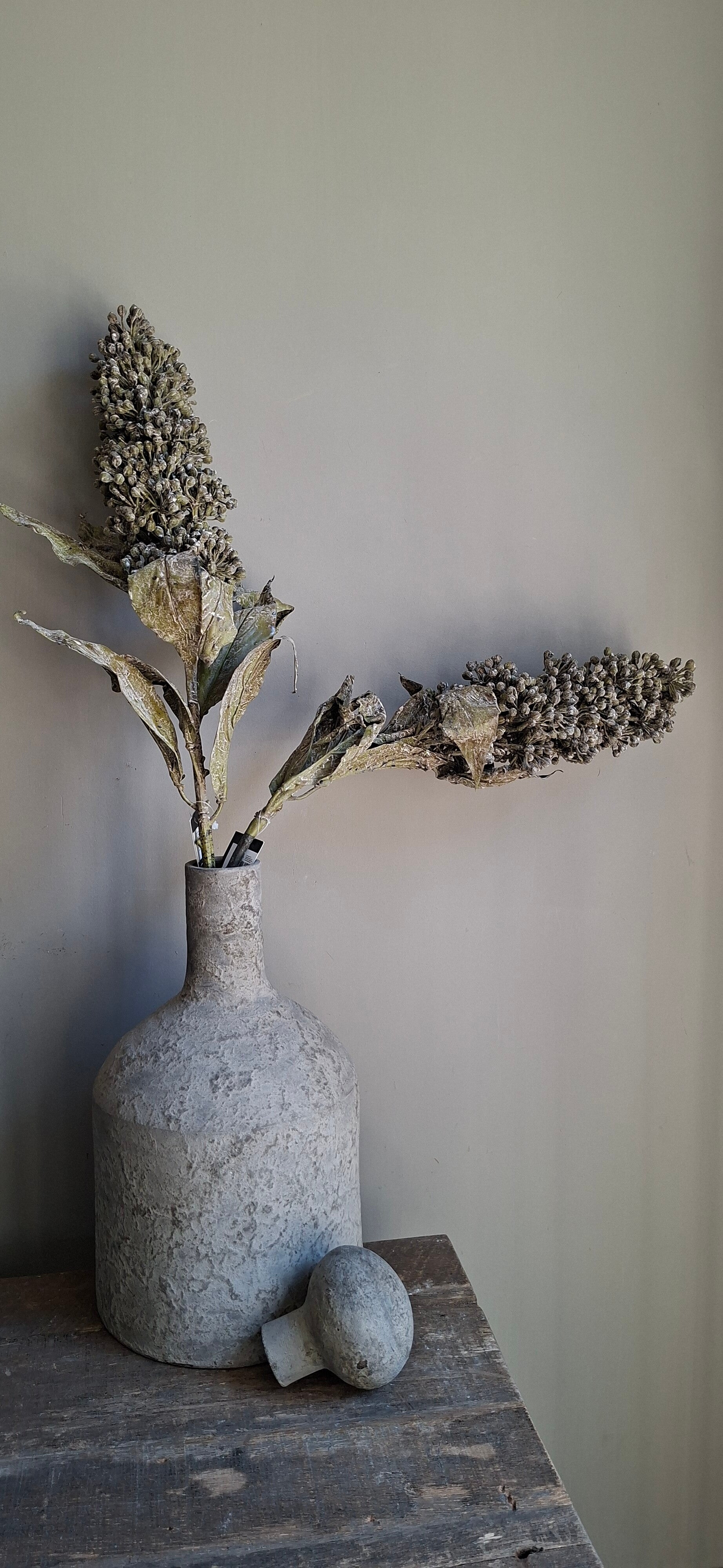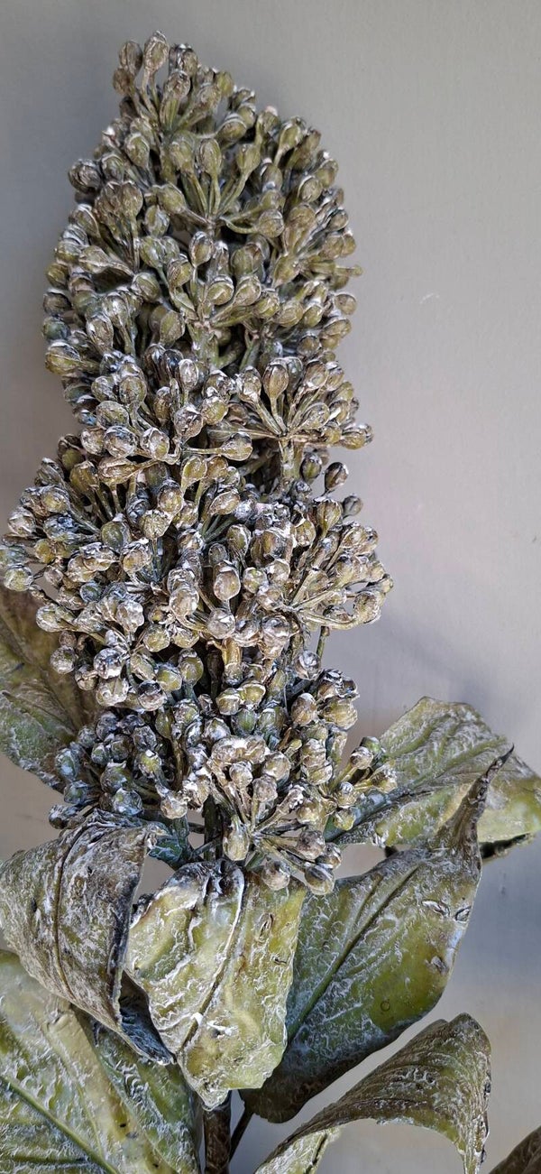 Mooie kunsttak met verdorde bladeren. De bloem heeft bessjes achtige bolletjes. Past erg mooi in een landelijk interieur.