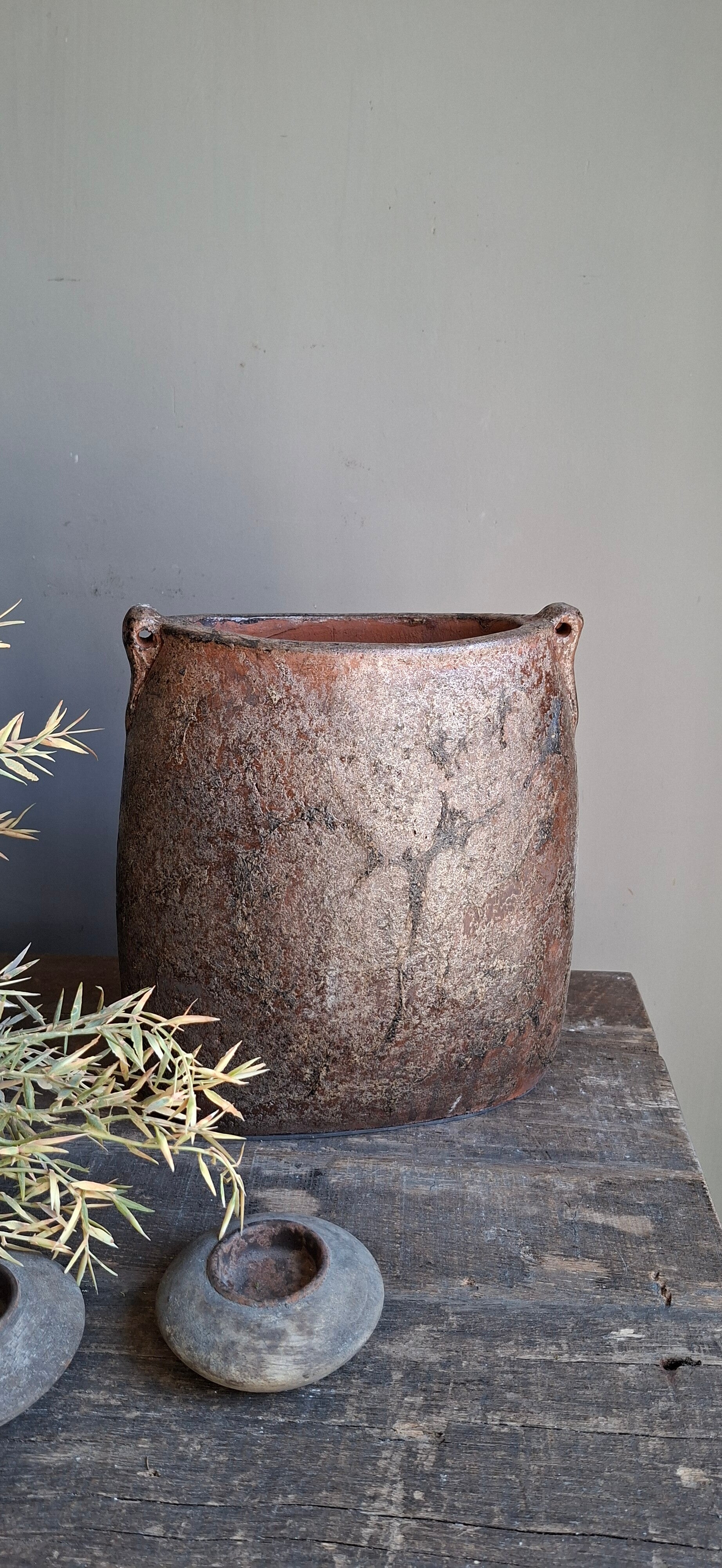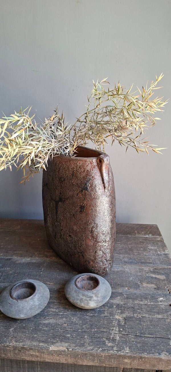 Aardewerk smalle pot, iedeaal om op een vensterbank te zetten, maar kan natuurlijk op elke plek neegezet worden.