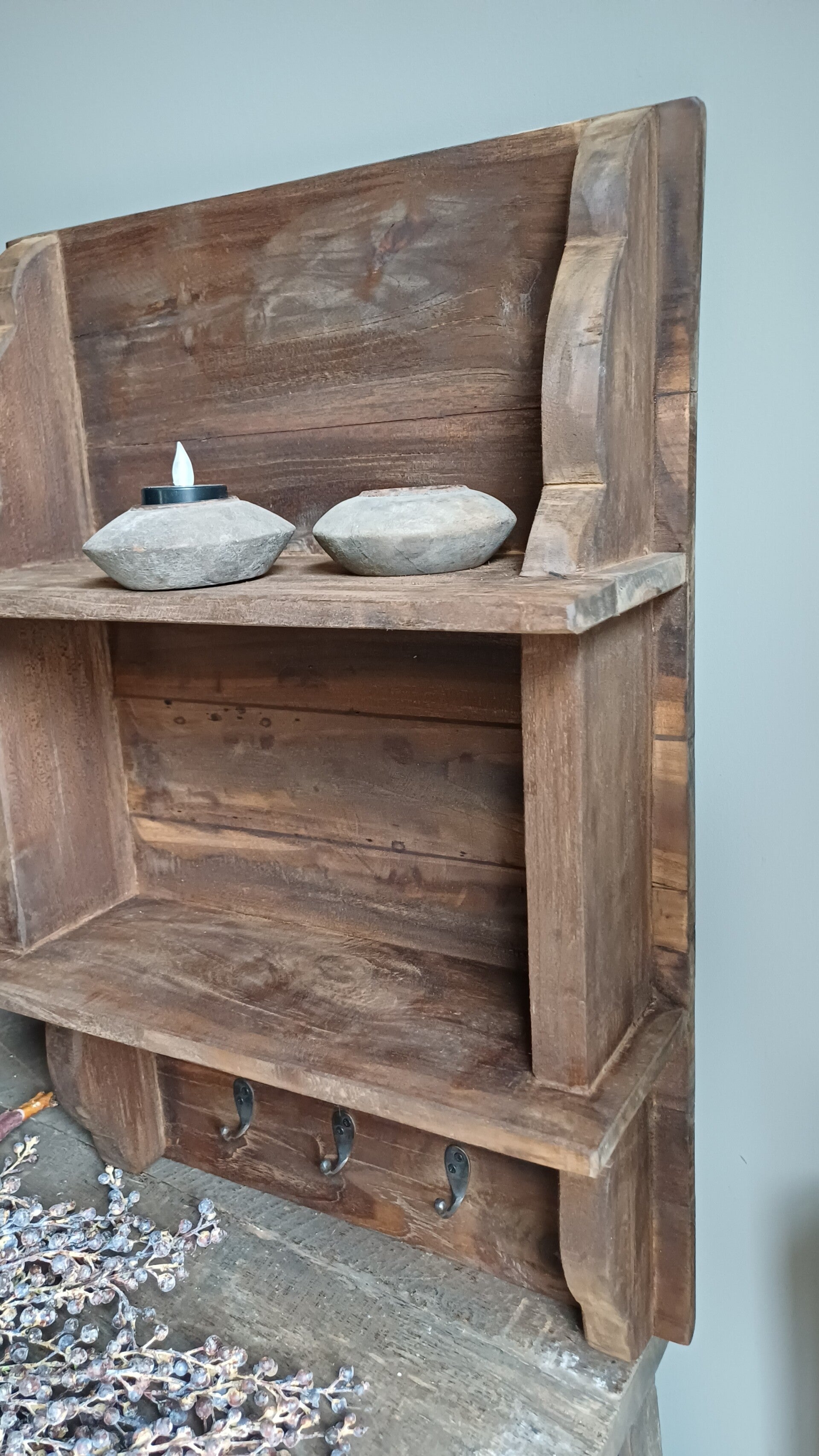Erg handig hang kastje met 3 haakjes voor iets aan te hangen. Dit artikel is uit onze landelijke robuuste collectie en kan oneffeheden hebben waardoor het karakter krijgt.Achterkant zitten haakjes om hem op te hangen. Kleur kan afwijken van foto.