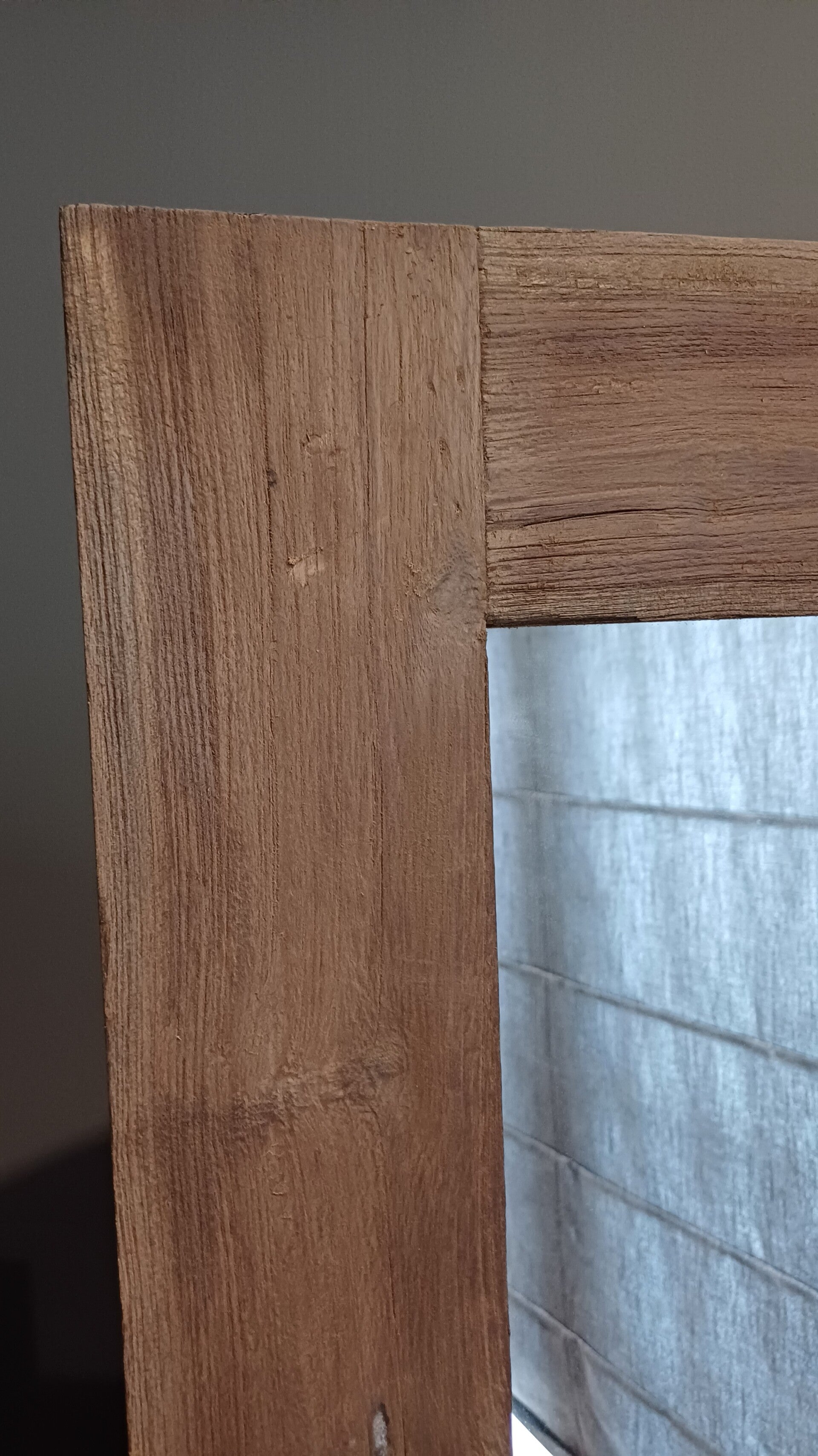 Landelijke lange spiegel van robuust hout. Past erg mooi in een hal. Je kunt de spiegel horizontaal of vertikaal ophangen of gewoon neerzetten. Elke spiegel is uniek en heeft zijn eigen karakter door imperfectie.