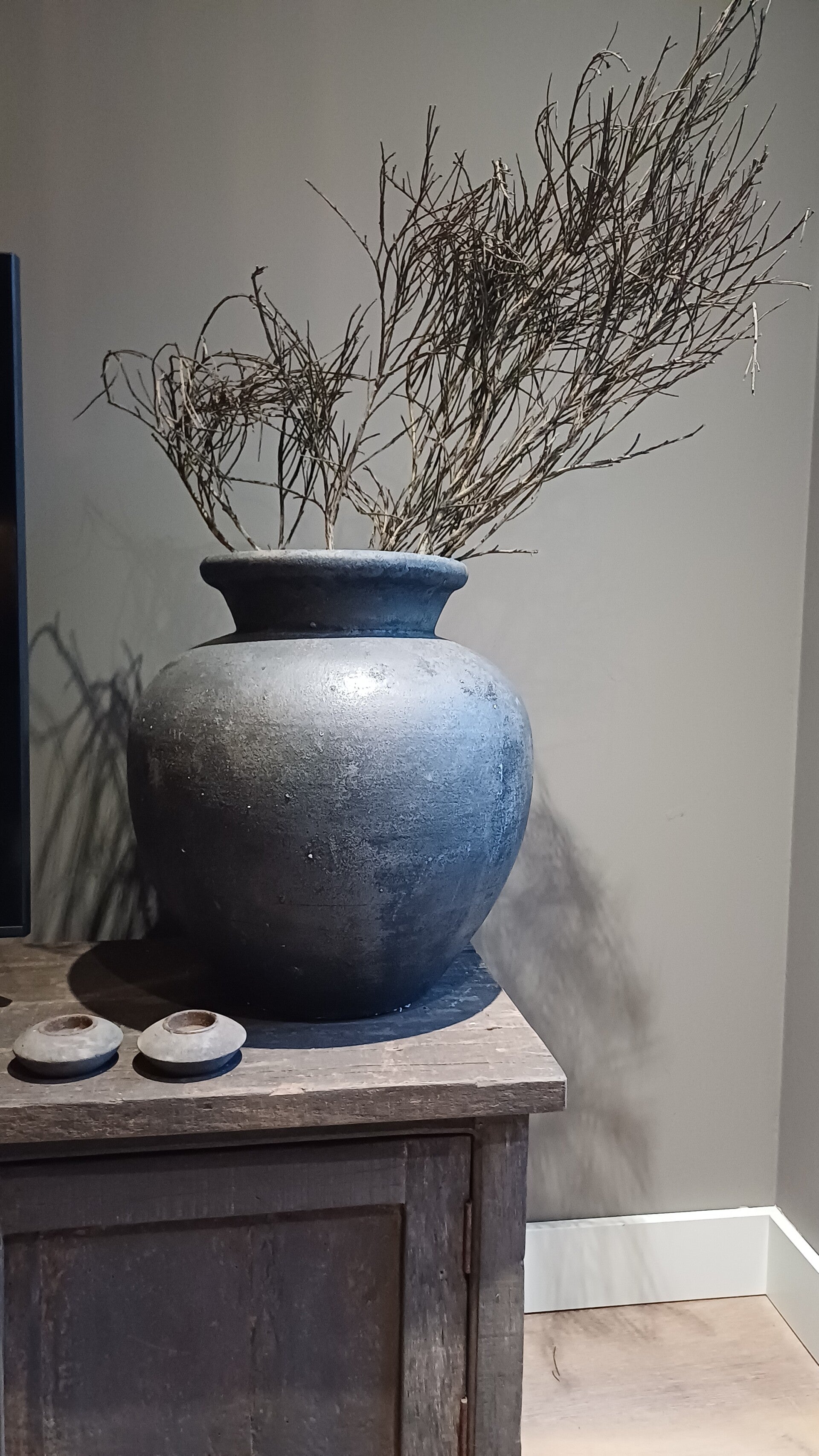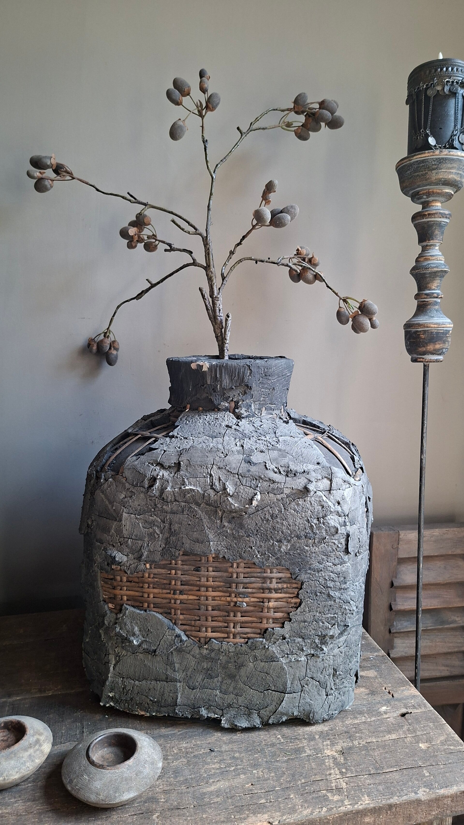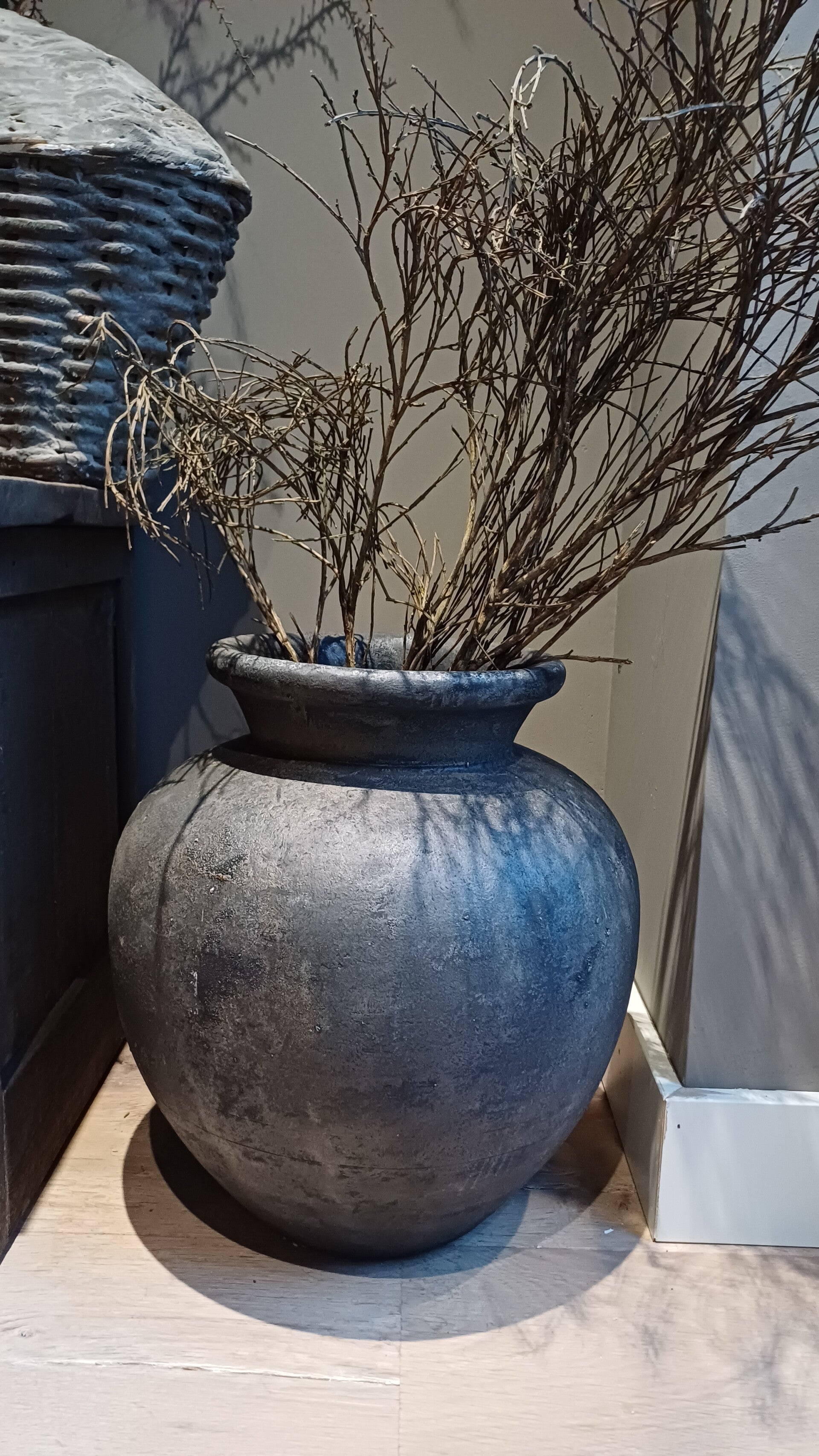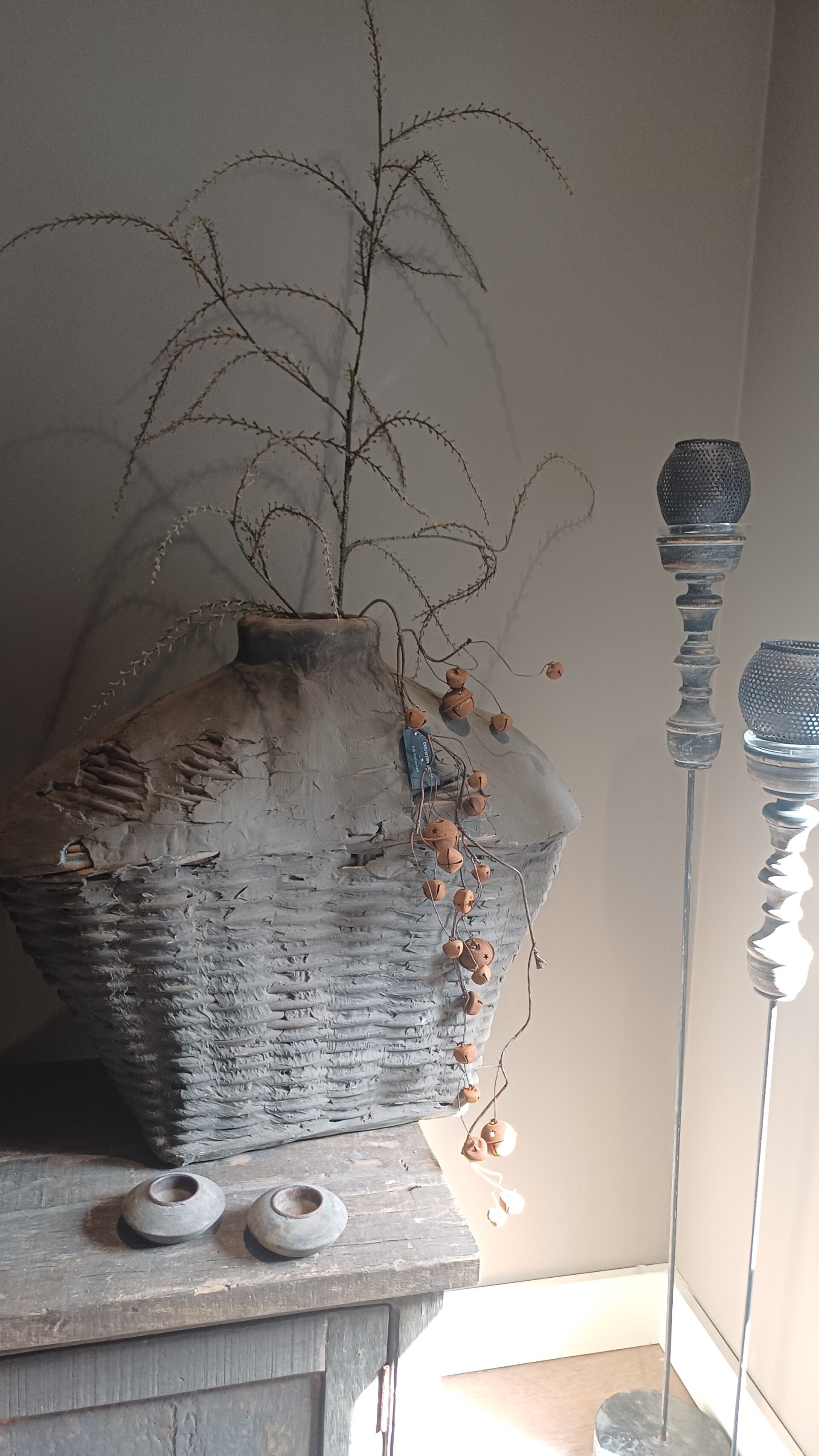 Super gave zeer zware mand/vaas, (10 kilo) ziet uit als een heel oude leemmand. Alleen een tak erin en je hebt een eyecatcher in huis.